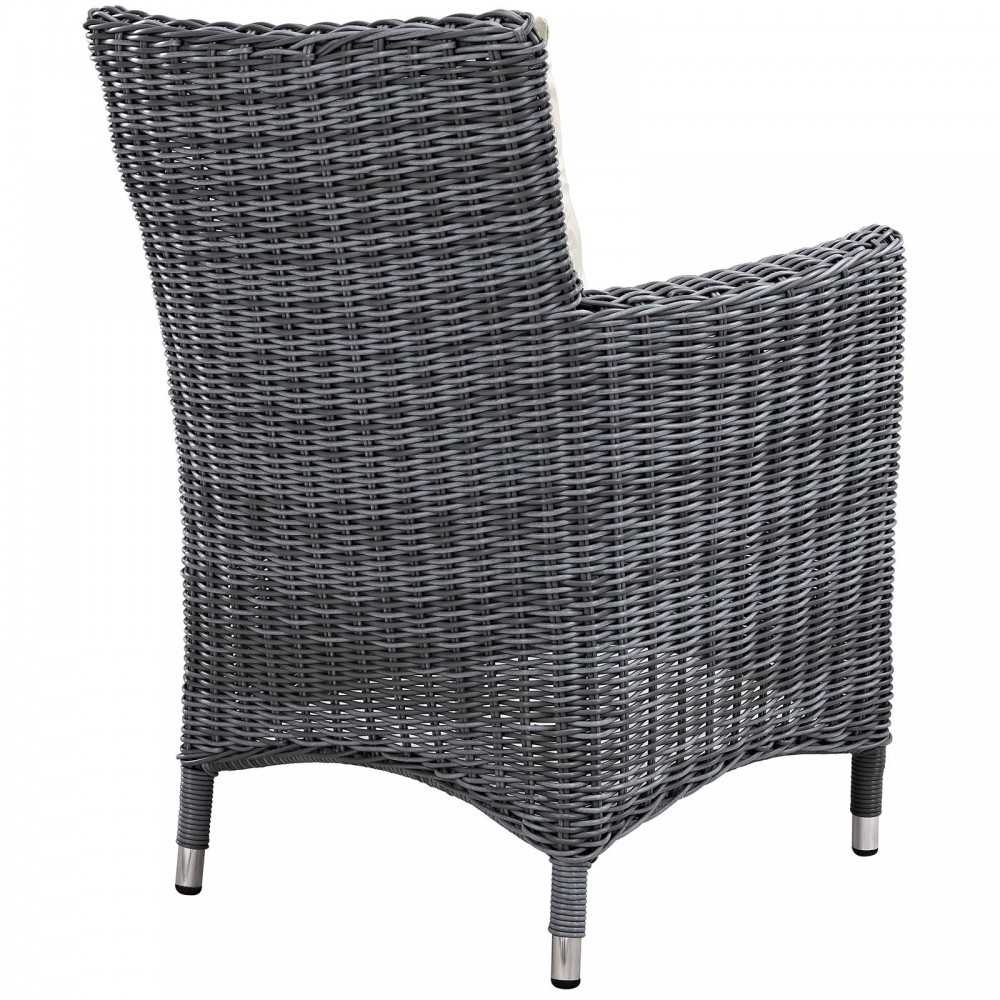 Experience the outdoors with exceptional comfort and quality. Summon Outdoor Patio Dining Table Set offers an exquisite two-tone synthetic rattan weave, plush all-weather cushions with industry-leading Sunbrella fabric, UV protection, and a sturdy powder-coated aluminum frame. Featuring rounded arms and an elegant modern look, Summon Outdoor Dining Furniture set is part of an avant-garde outdoor sectional series well-equipped for enhancing patio, backyard, or poolside gatherings. This installment of the series is an Outdoor Patio Dining Table Set with Umbrella.