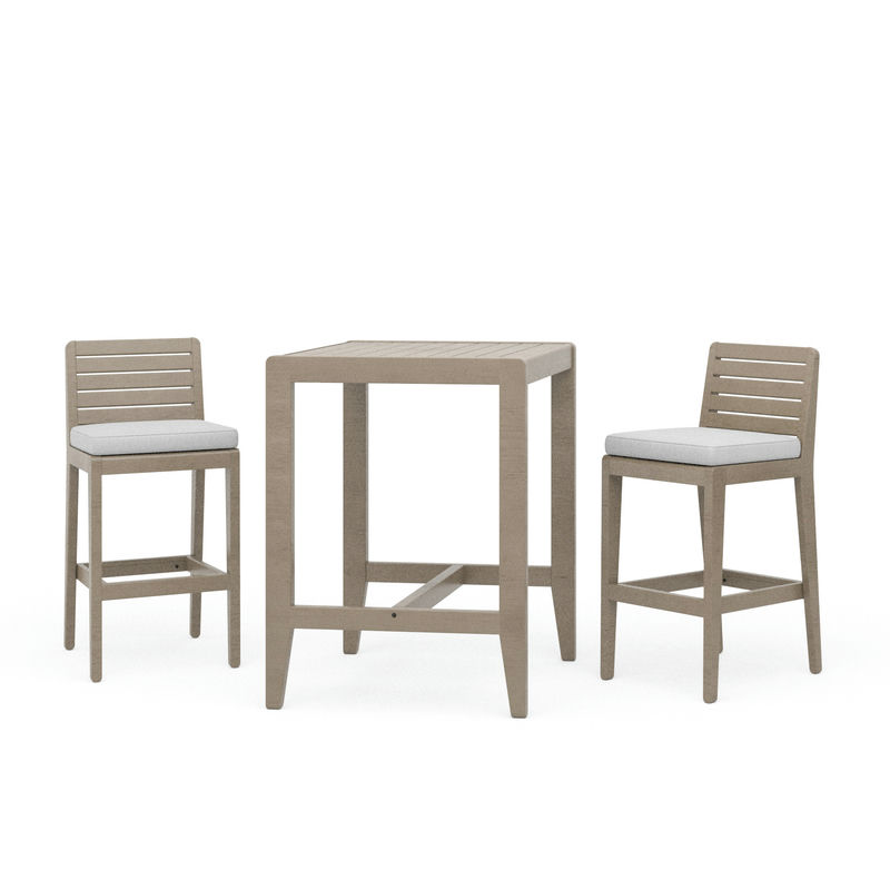 Any outdoor space becomes a desirable destination for entertaining or relaxing with this Homestyles Sustain 3-Piece Outdoor Set. This bistro table with two barstools bring up to two people closer together to enjoy clean, classic styling and cushioned comfort. The water-resistant, gray acacia wood with a UV-resistant finish delivers solid performance year after year.