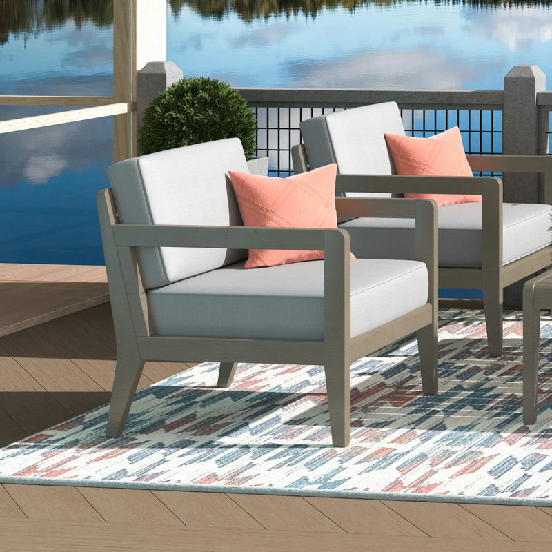 - UV and water-resistant gray polyester cushions feature thick quick dry foam for cozy comfort and lasting performance.