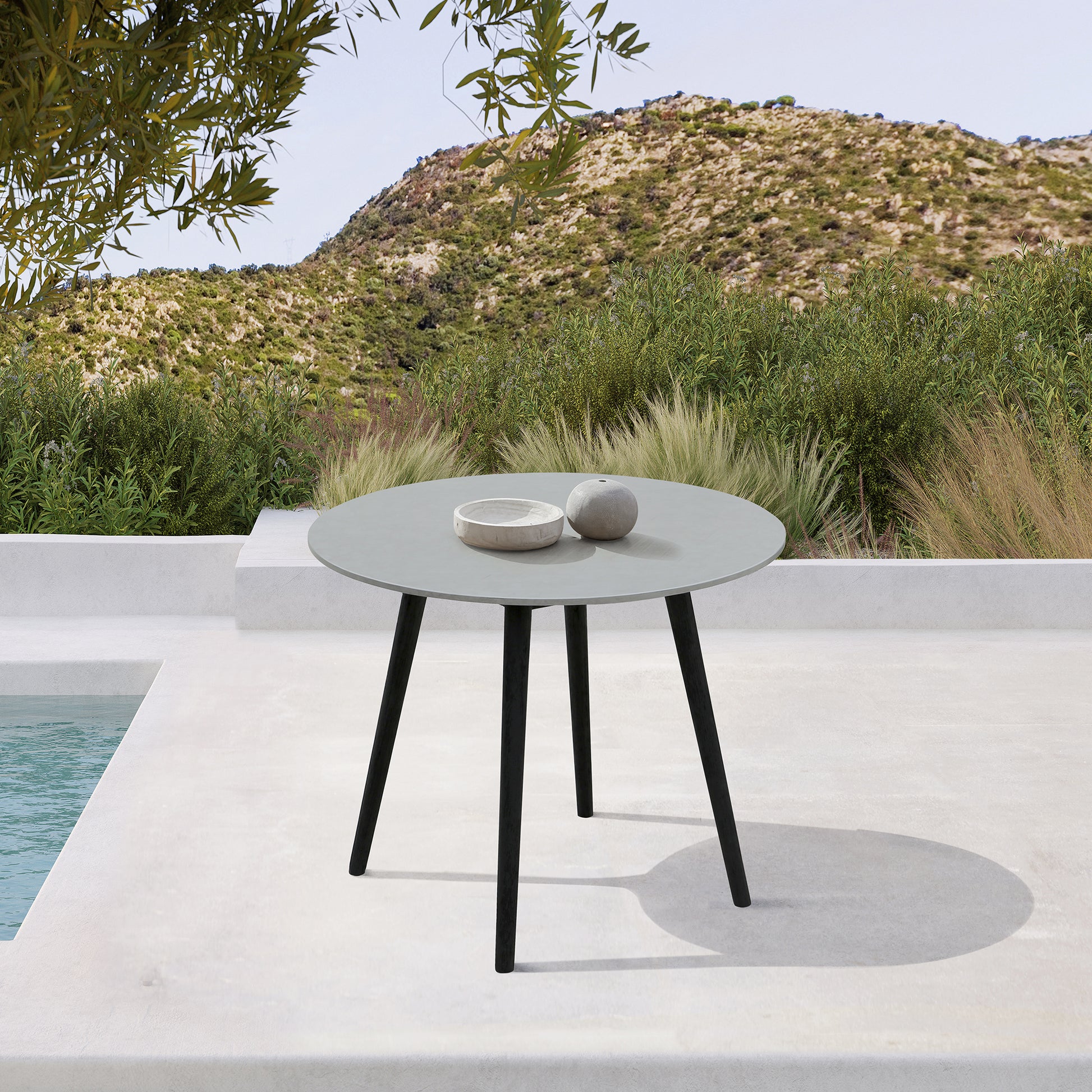 Sydney Outdoor Patio Round 36" Dining Table in Black Eucalyptus and Grey Stone