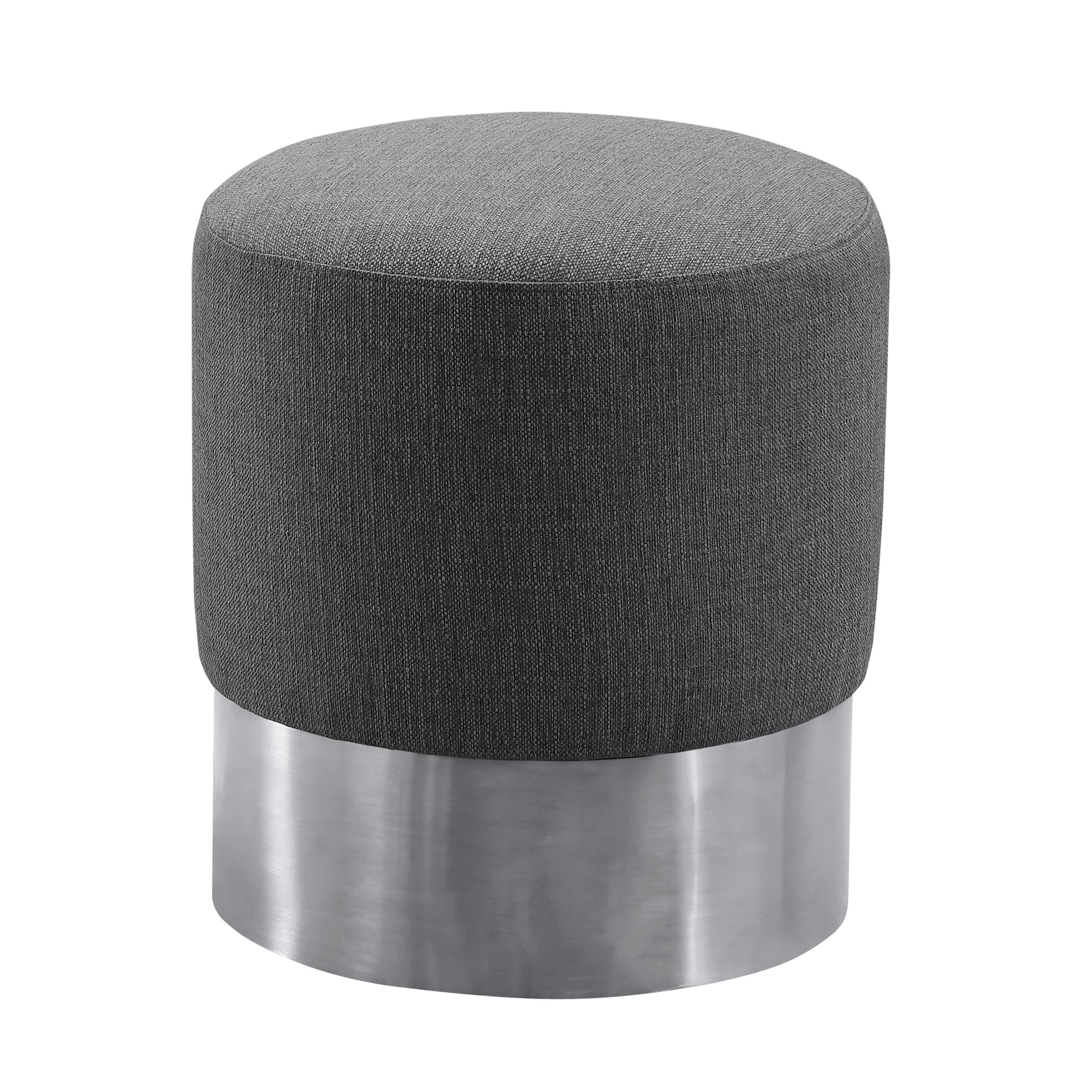 Tabitha Contemporary Round Ottoman in Brushed Stainless Steel with Gray Fabric