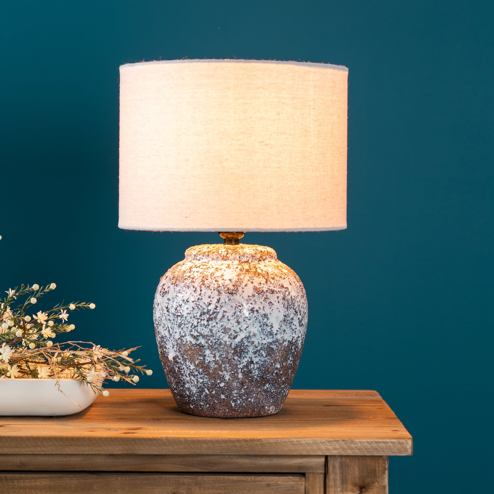 Illuminate your living space with this elegant Ceramic Table Lamp. Featuring a quality linen shade, the abstract brown and white painted base paired with the warm beige shade is the perfect combination to create a timeless piece. The sturdy ceramic base composition is sure to last for seasons to come.