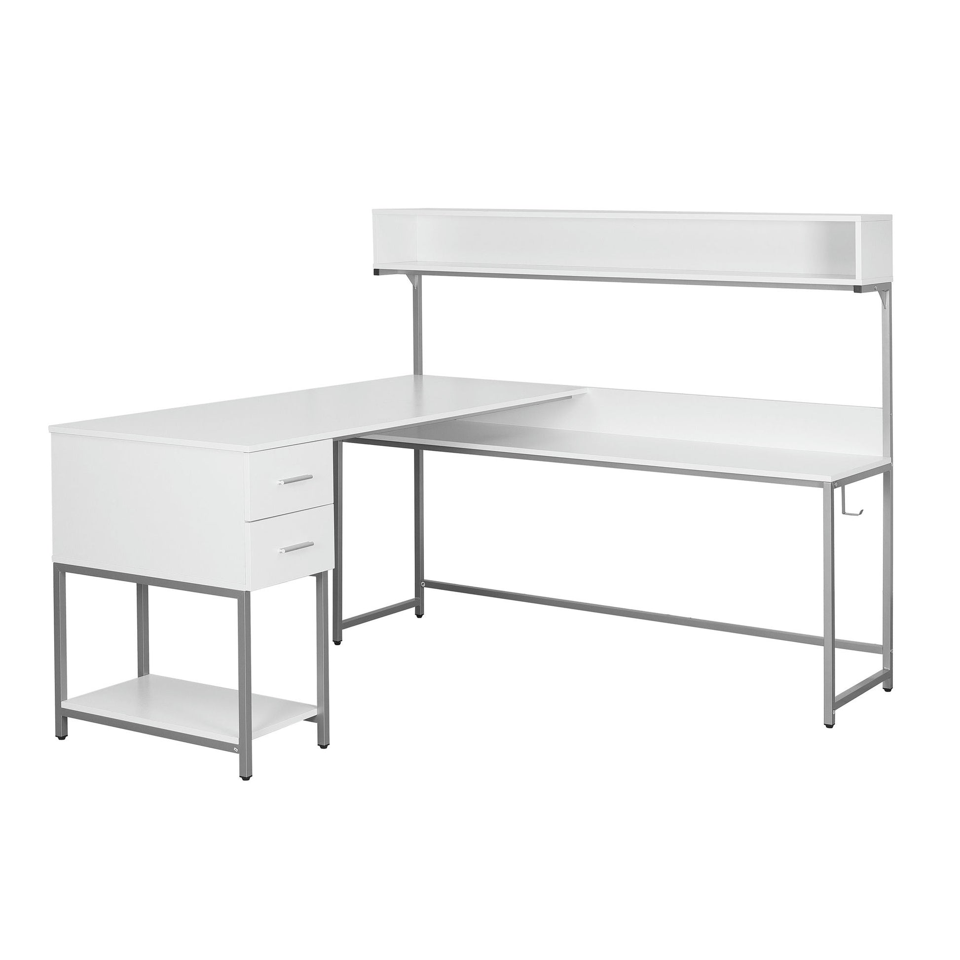 Techni Mobili L-Shape Desk with Hutch and Storage, white