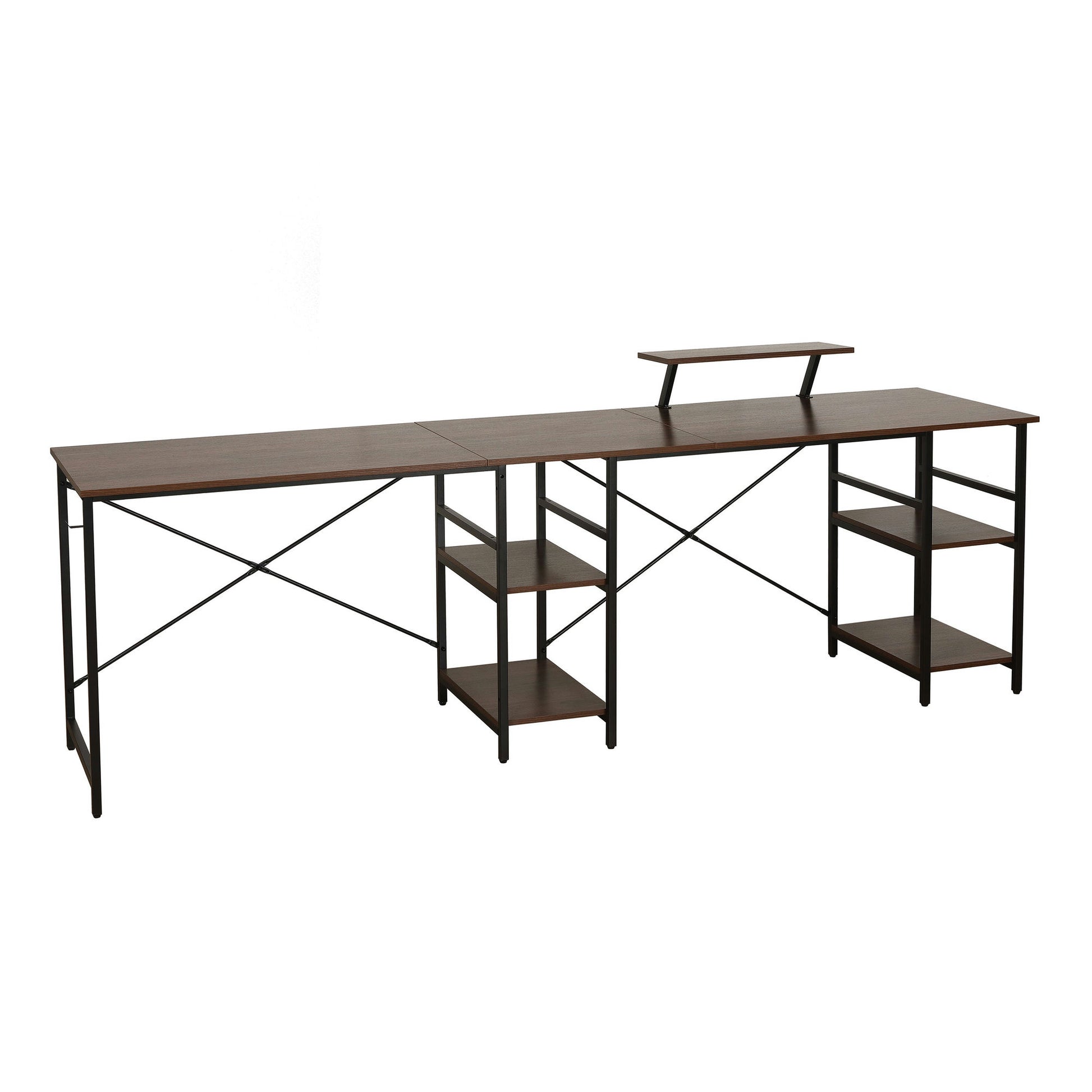 This industrial-style L-shaped computer desk retains the functional performance of modern furniture. It can be assembled in L-shape or straight in-line shape to meet your space needs and comfort. Crafted from engineered wood, the ample storage and spacious workspace adds functionality and versatility. The walnut surface veneer textured matches the industrial black metal frame as it defines a characteristic simplistic touch . The desk frame is made of heavy-duty black powder-coated steel, ensuring maximum stability and durability.