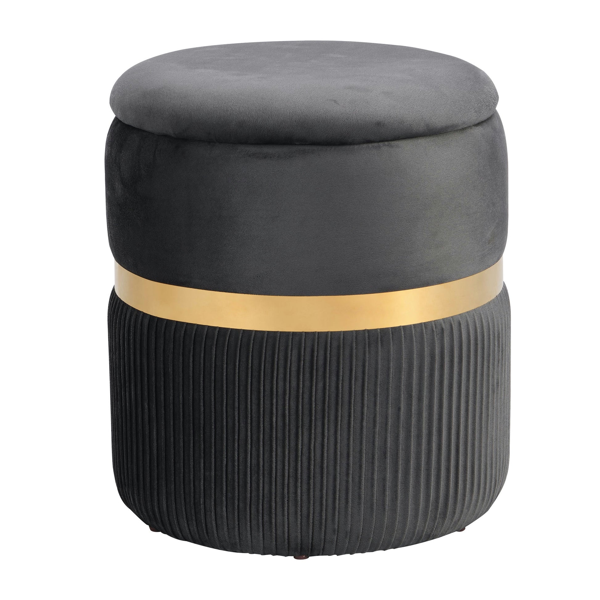 Techni Mobili Modern Velvet Round Ottomans with Storage - Grey, Brushed gold