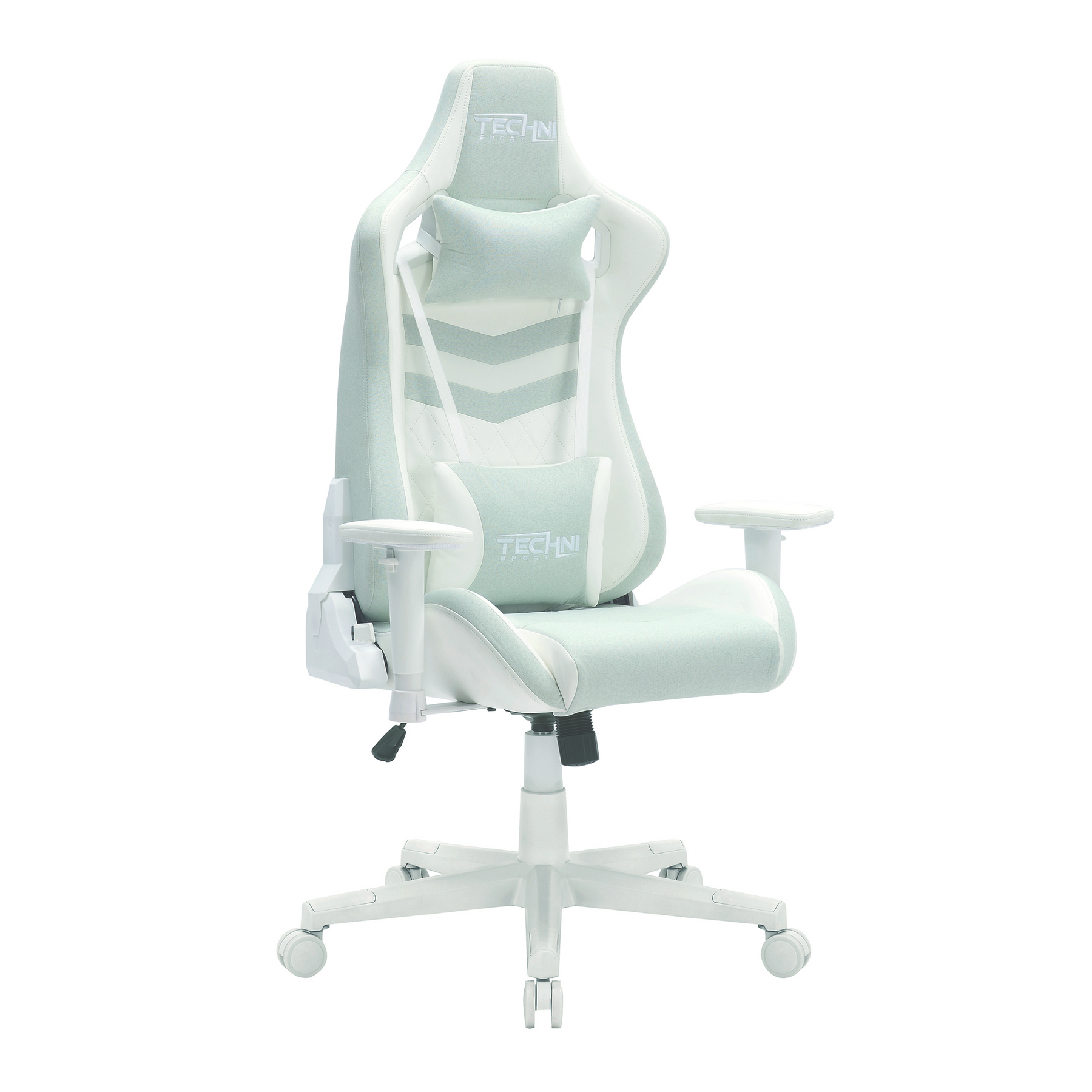 The Techni Sport TS86 Pastel colors fabric gaming chair brings 3 fresh pastel colors combined to add to a cool vibe to your everyday gaming sessions, or even adding light colors to your home-office . Upholstered in rich fabric combined with Synthetic PU leather, high-quality memory foam seat padding keeps you comfortable during long hours of gaming sessions, or even while working from home. It includes a pneumatic height adjustable seat, 2D white padded armrests, 150 degrees recline mechanism, a lumbar and neck support cushions, tilt with tension lock and the matching nylon base with non-marking casters. This chair supports the weight limit of up to 300 lbs. and has a 2-year limited warranty. Color: Mint