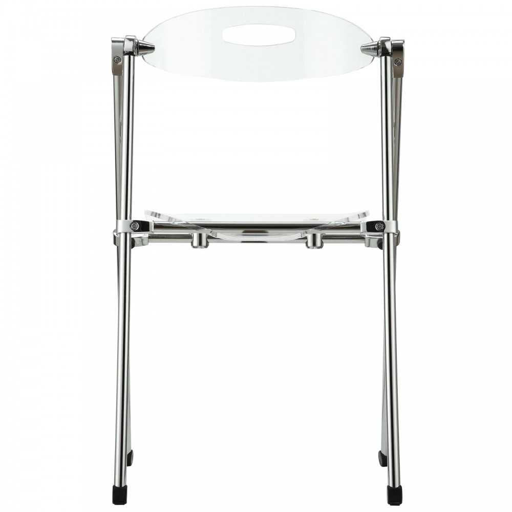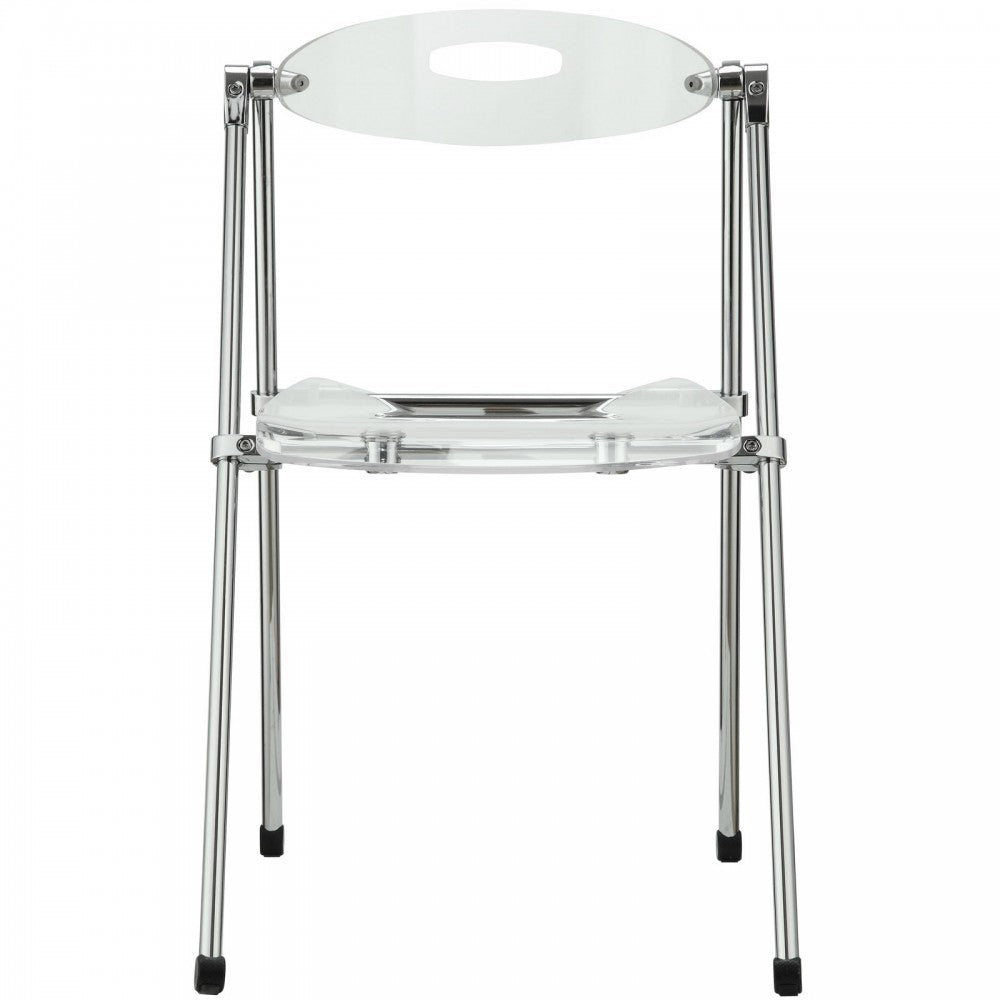 A combination of convenience and comfort, the Telescope Dining Side Chair set offers many desirable features. The back tilts to support you, even when you are reclining. For storage, this dining accent chair has telescoping legs that allow you to effortlessly fold the chair down to a compact storage size. Ultra modern and attractive with a clear back and seat, the Telescope Dining Side Chair is not only a smart choice, but a stylish one as well.