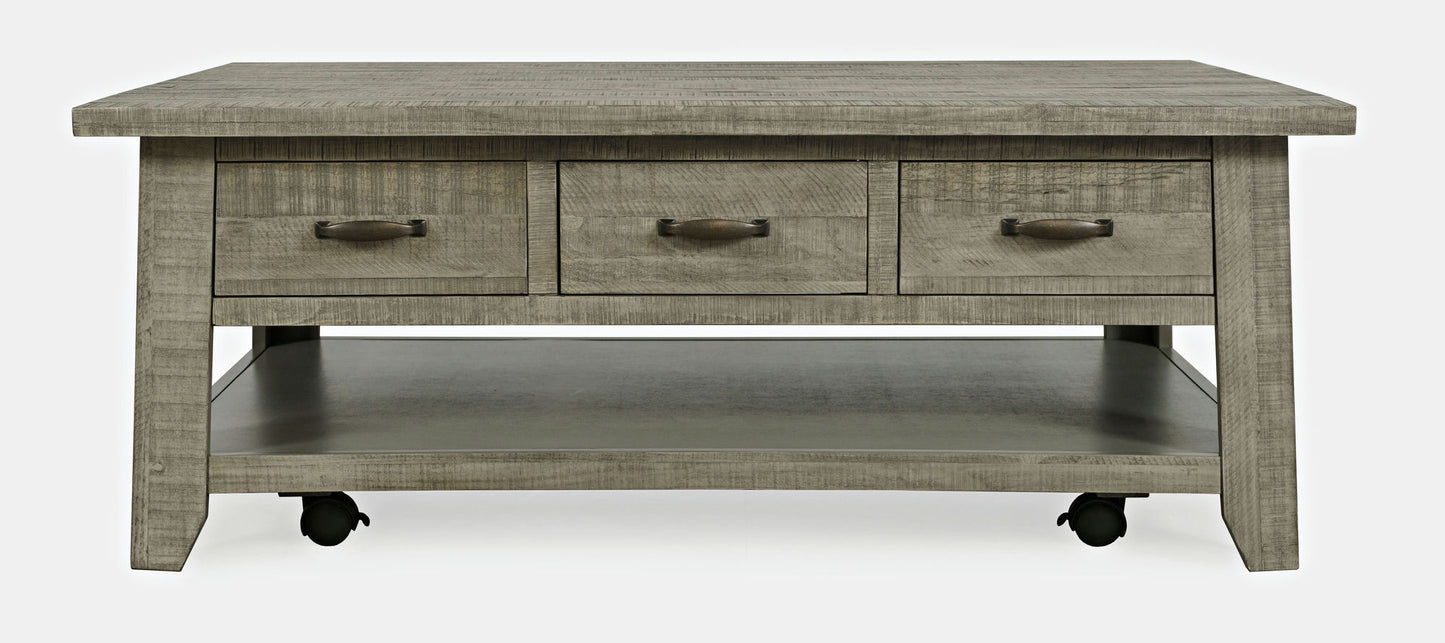 Telluride 50" Coffee Table with Caster Wheels and Pull-Through Drawers - Grey