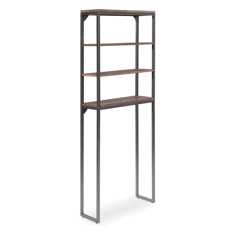 An alluring industrial design using mixed media materials gives this Telluride Over-the-Commode Stand by homestyles a cool vibe. Constructed of wire-brushed pine veneers over engineered wood in a multi-toned driftwood finish with metal tube framing in a powder-coated, dark grey painted finish. Features four shelves, with the middle two being fully adjustable. Comes carefully packaged with all items labeled and easy-to-follow assembly directions. Measures: 64"H x 25"W x 8.5"D.