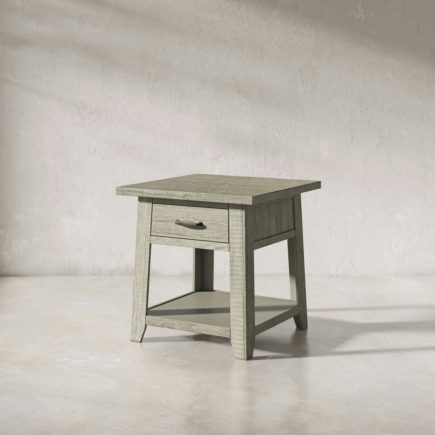 The Telluride Collection is the essence of rustic country style with distressed solid pine handcrafted into spectacular furniture perfect for any room in your home. Each piece is unique with subtle distressing that brings out the beauty of the natural wood. This square end table will add a wonderful modern countryside touch and beautiful focal point for your living room or hallway. Constructed from solid pine, the neutral finish of this piece brings out the uniqueness of the wood grain while one drawer and one fixed shelf provides plenty of storage.