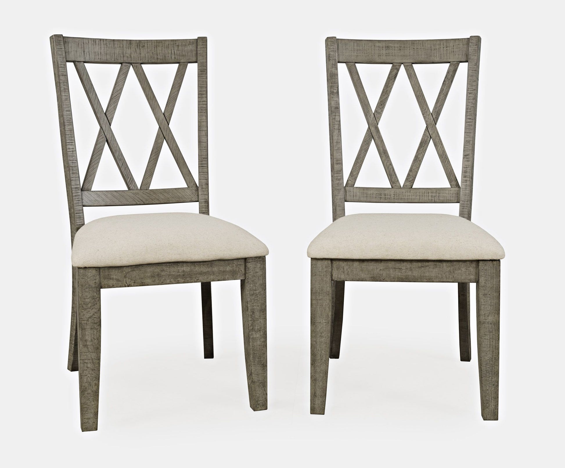 The Telluride Collection is the essence of rustic country style with distressed solid pine handcrafted into spectacular furniture perfect for any room in your home. Each piece is unique with subtle distressing that brings out the beauty of the natural wood. Farmhouse living meets contemporary style with this sturdy set of two dining chairs ready to make your home as unique as you are. Gentle distressing of the wood brings a neural tone that compliments any dining ensemble while soft easy to clean padding provides comfort and flair. The double X-backed silhouette standing 40 inches tall completes the look, and floor glides are included for an additional layer of protection.
