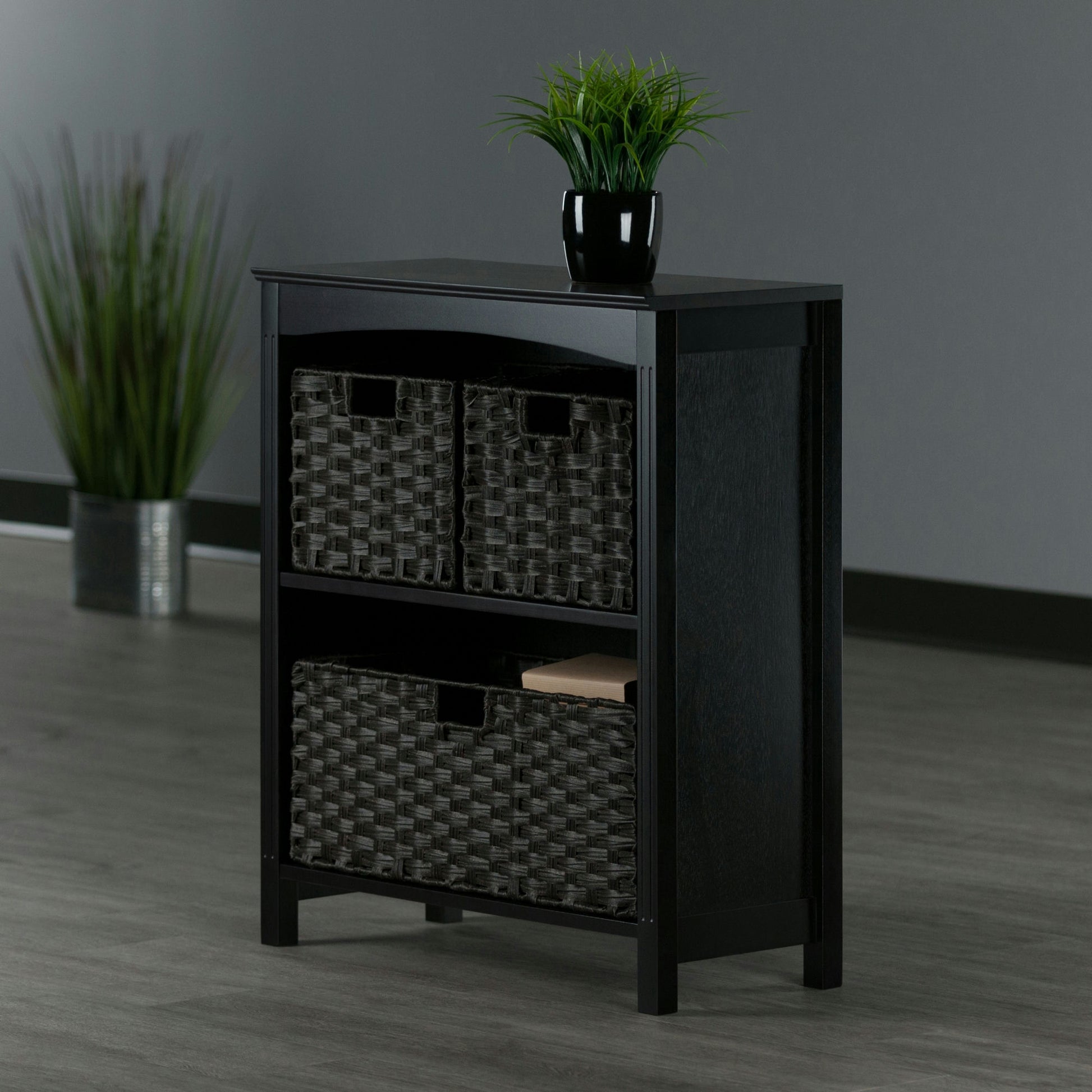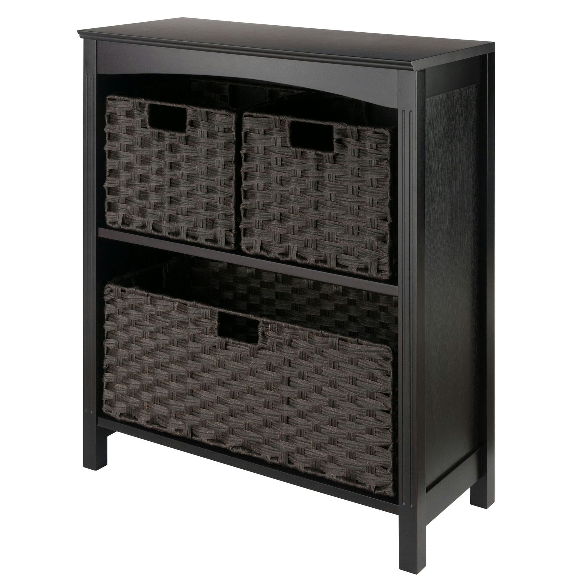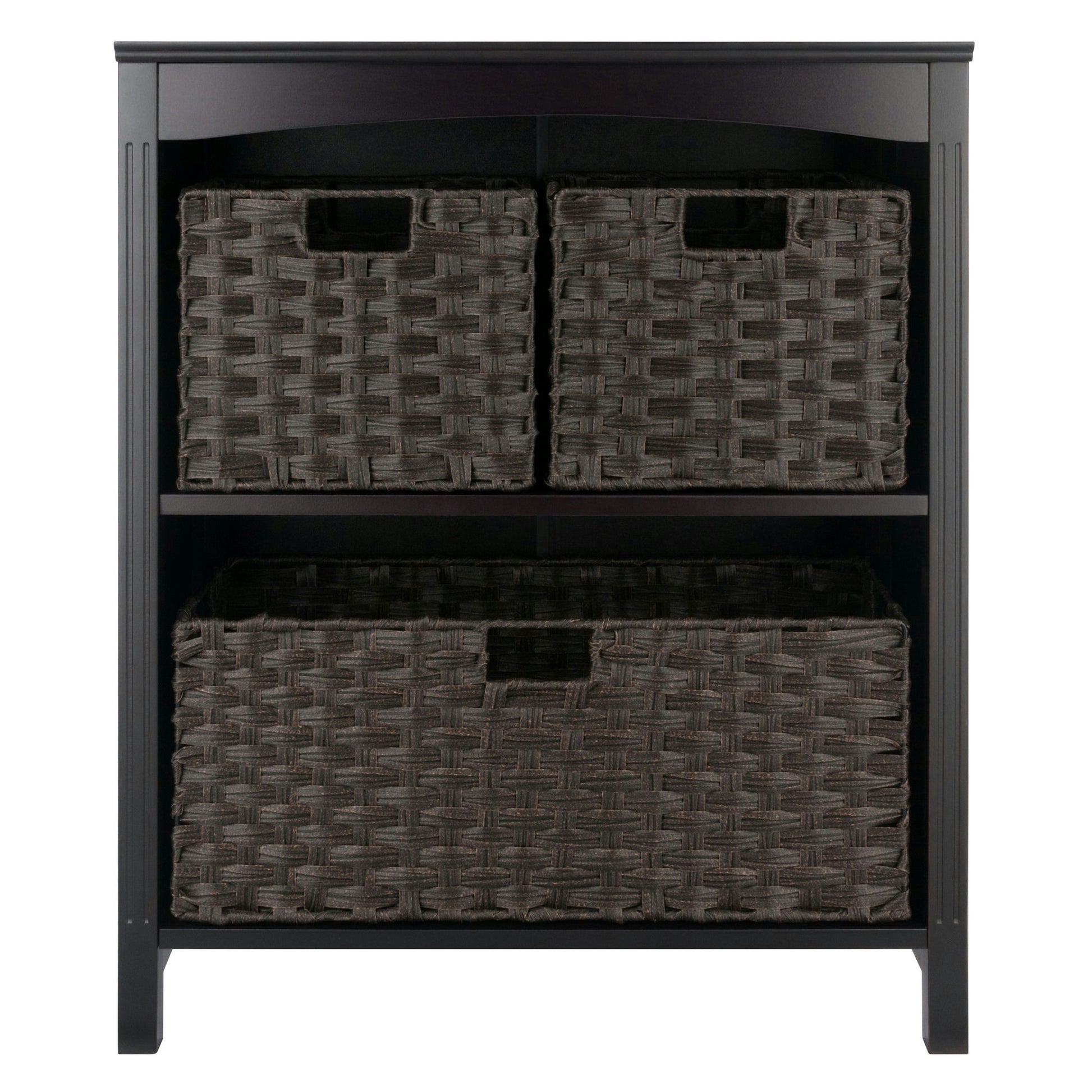 Terrace 4-Pc Storage Shelf with 3 Foldable Woven Baskets, Walnut and Chocolate