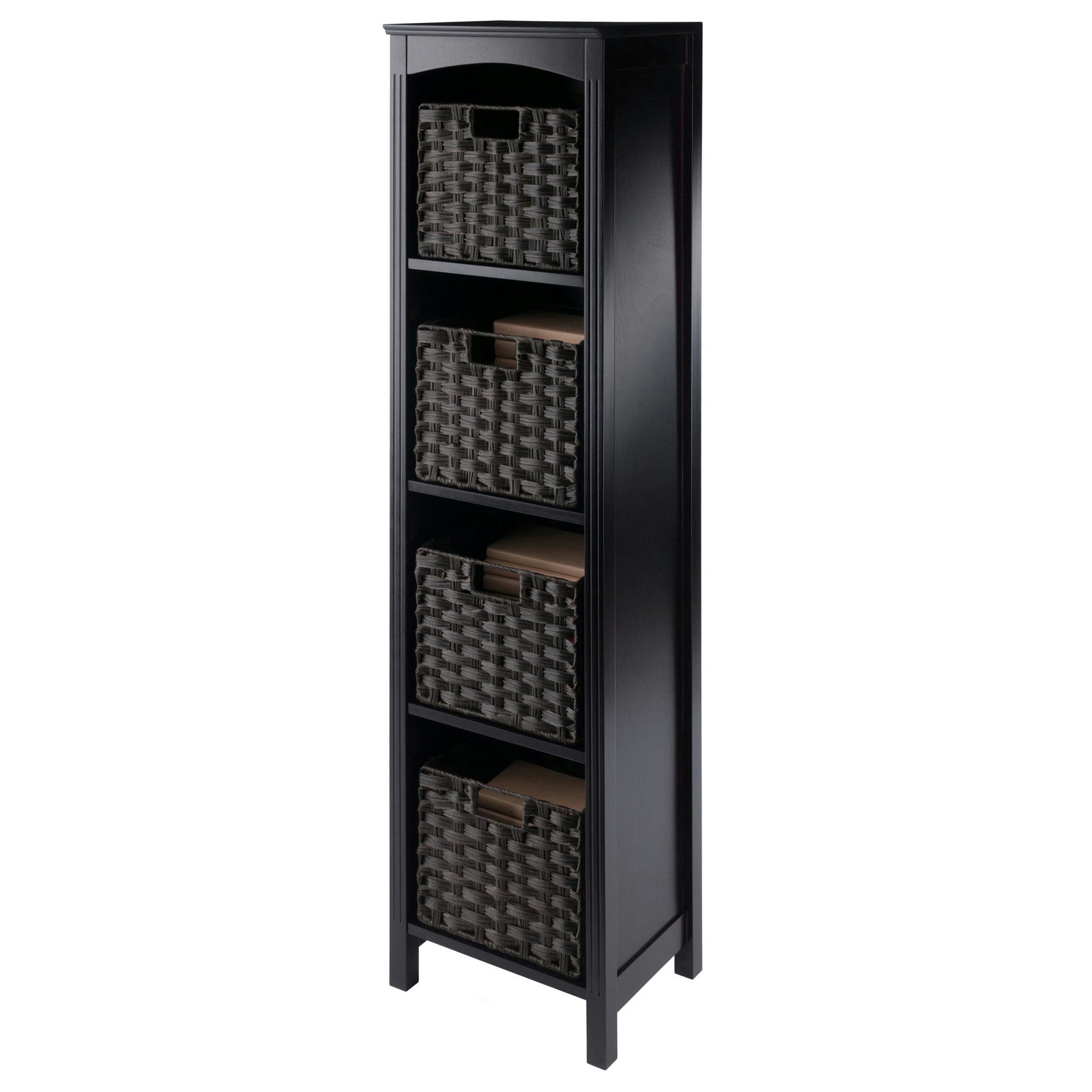 Terrace 5-Pc Storage Shelf with 4 Foldable Woven Baskets, Espresso and Chocolate