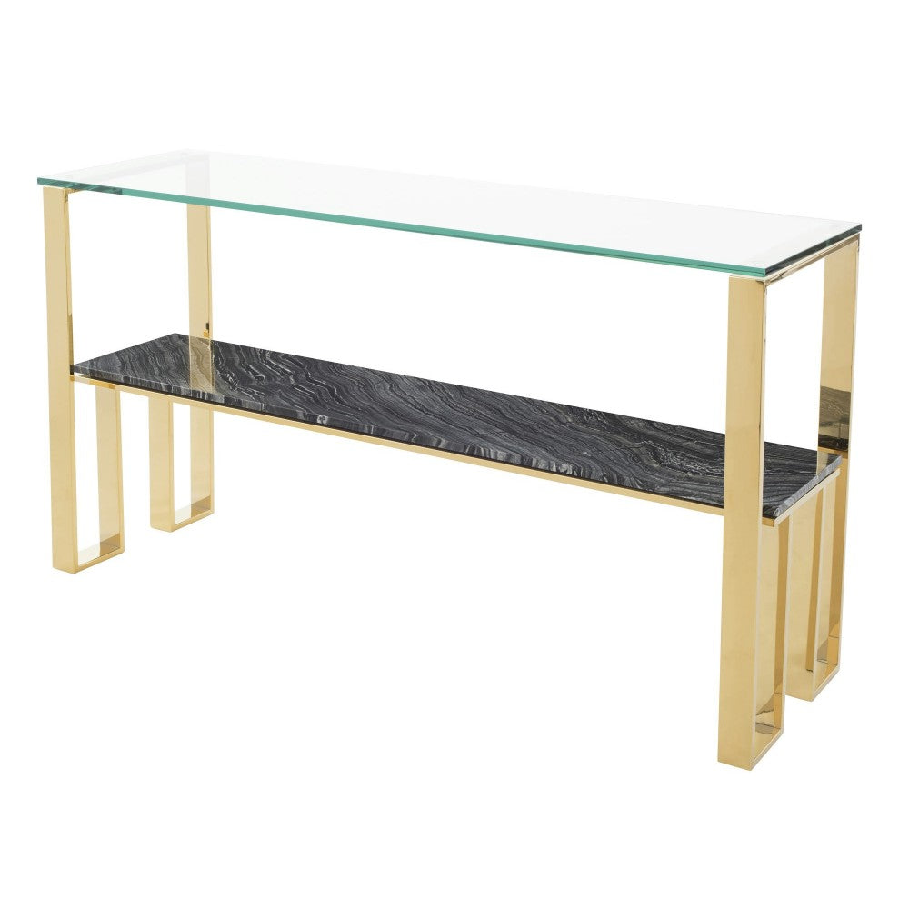Inspired by early modern deco styling the Tierra console finds inspiration in mixed materials. Brilliant planes of steel and glass highlight the natural textures of stone crafted into dazzling polished marble. The result; minimalism with a refined energy and spirit. Each piece of marble is expertly crafted out of a unique piece of natural stone, creating beautiful variations and one-of-a-kind details.