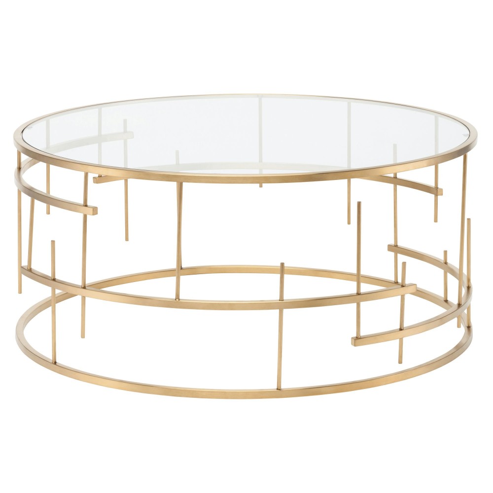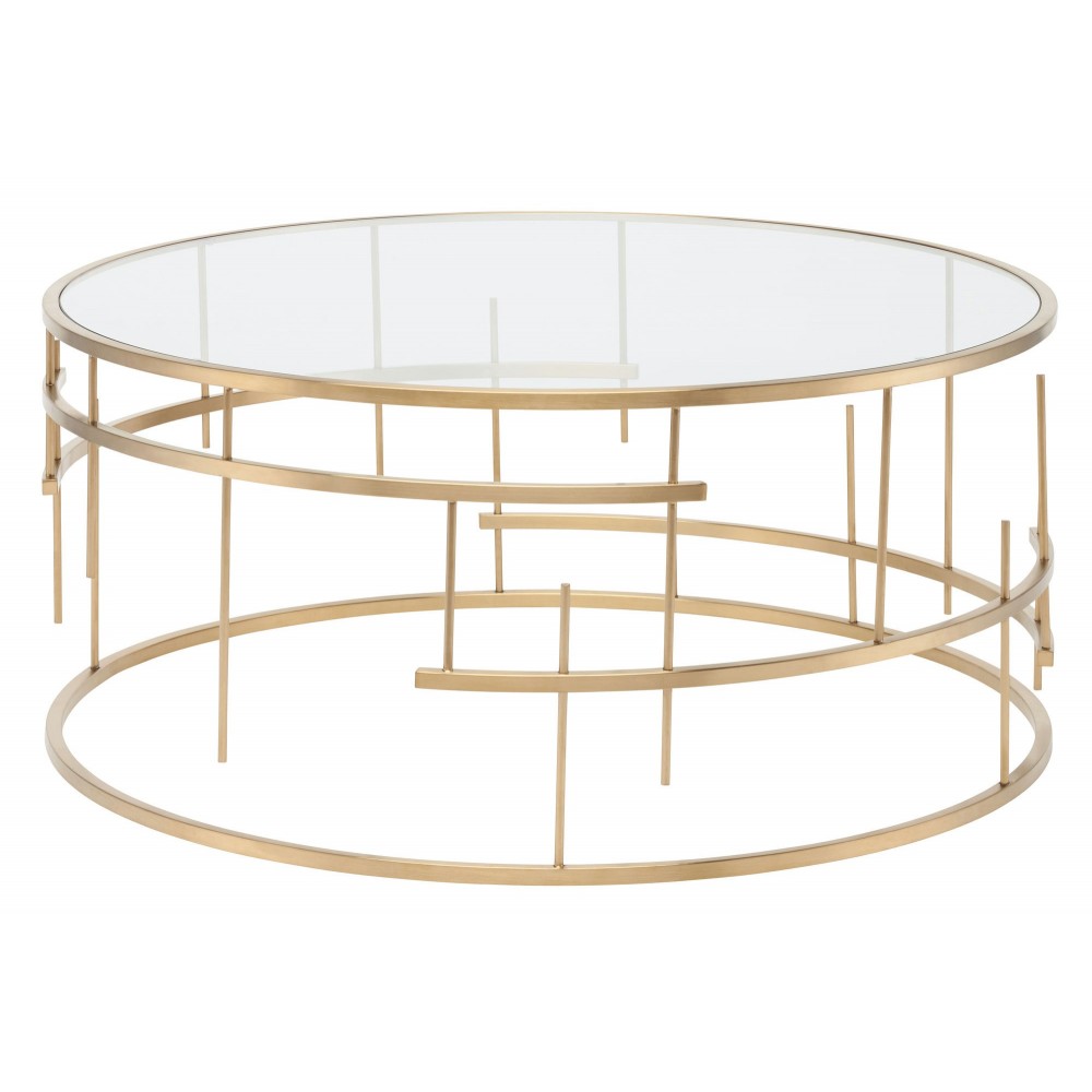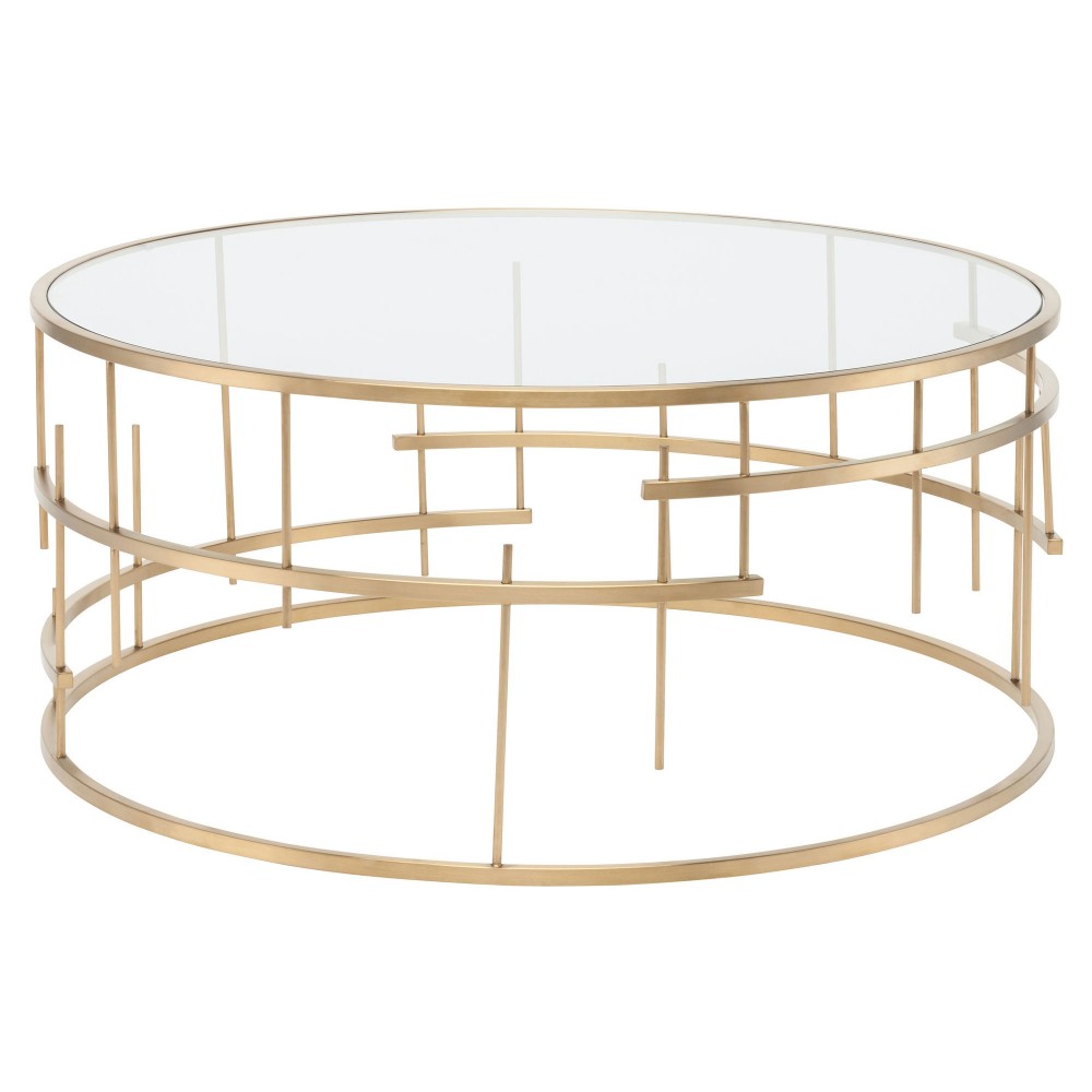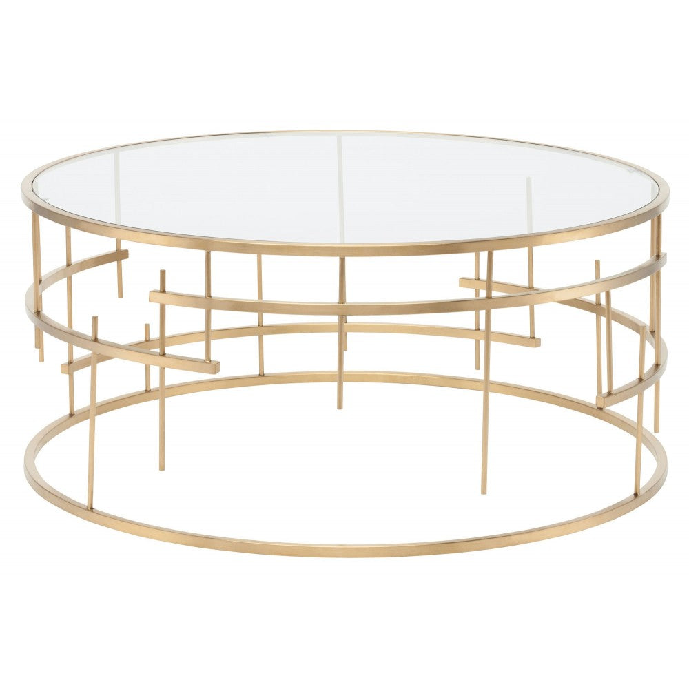 The delicate cross-hatching of the Tiffany coffee table finds its roots in the early modernism of the art deco era. A delicate geometric play of horizontal and vertical bars arranged in a curved pattern creates a light, open harmonious stainless steel frame heightened by 1/2 inch elegant clear glass top.