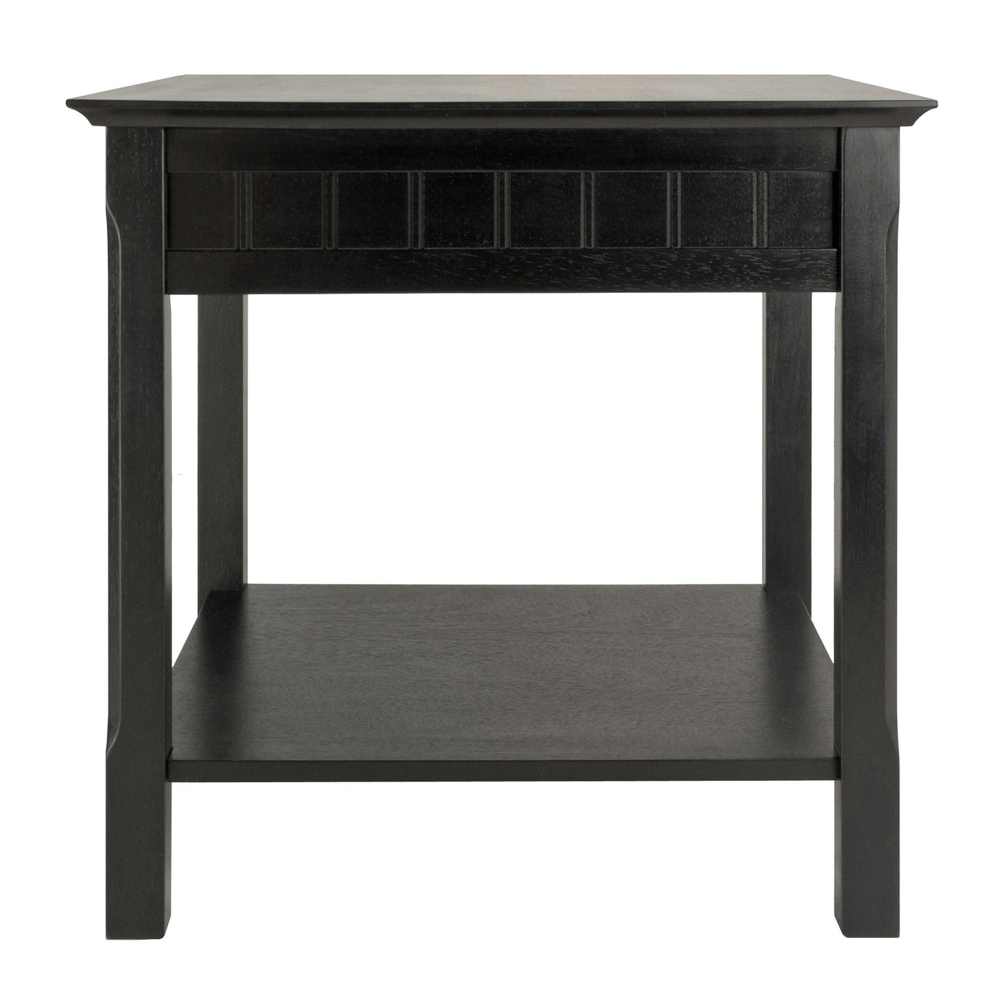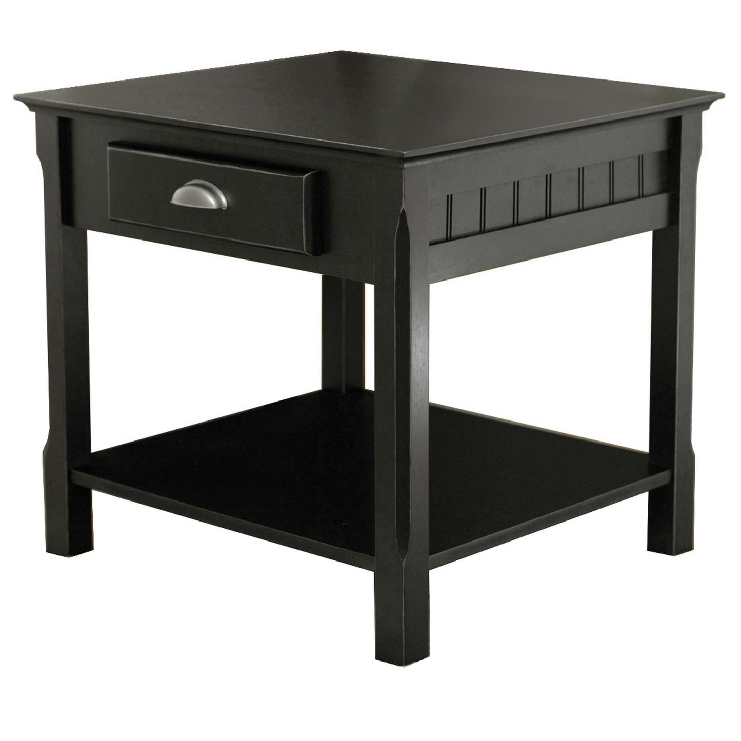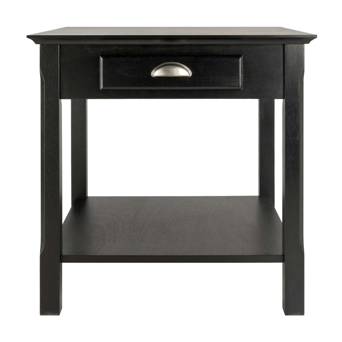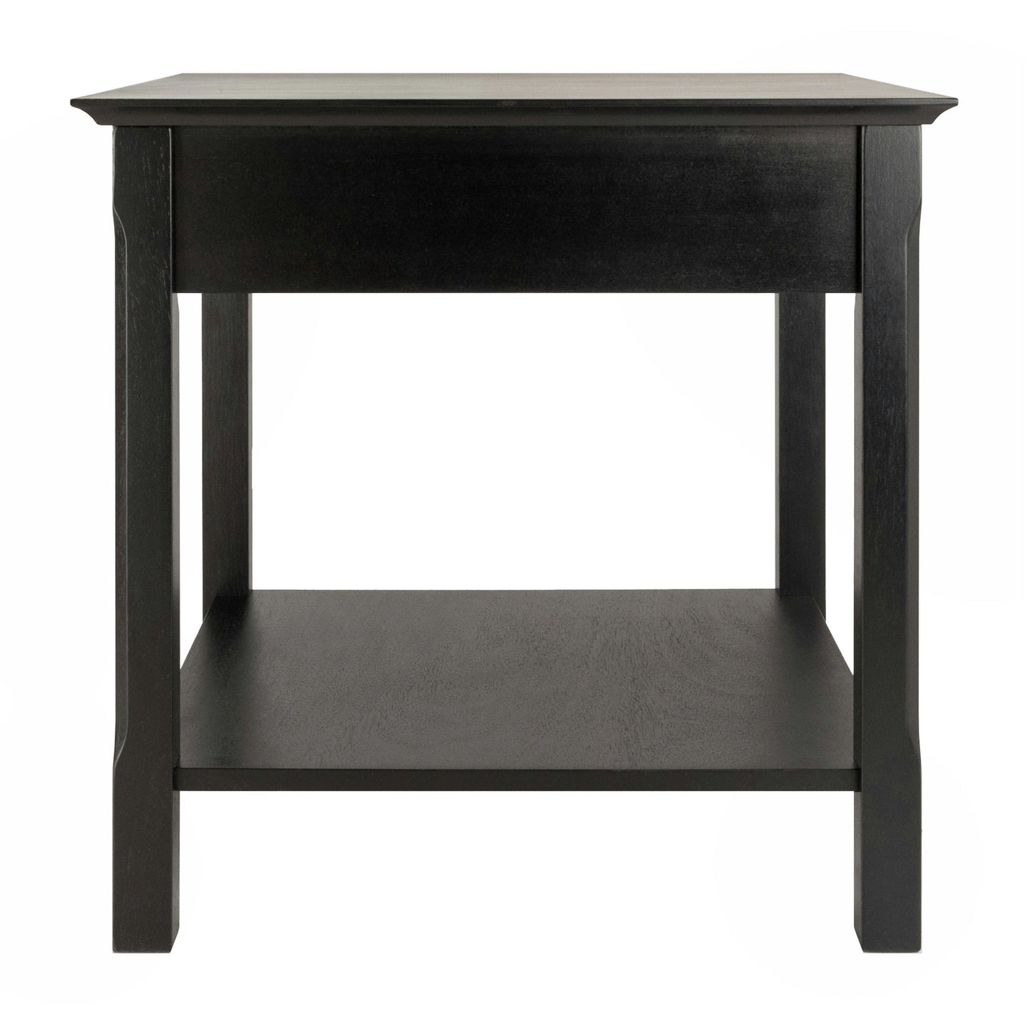 - Table assembled size is 22""W x 22"D x 22"H. Combination of solid/composite wood in black