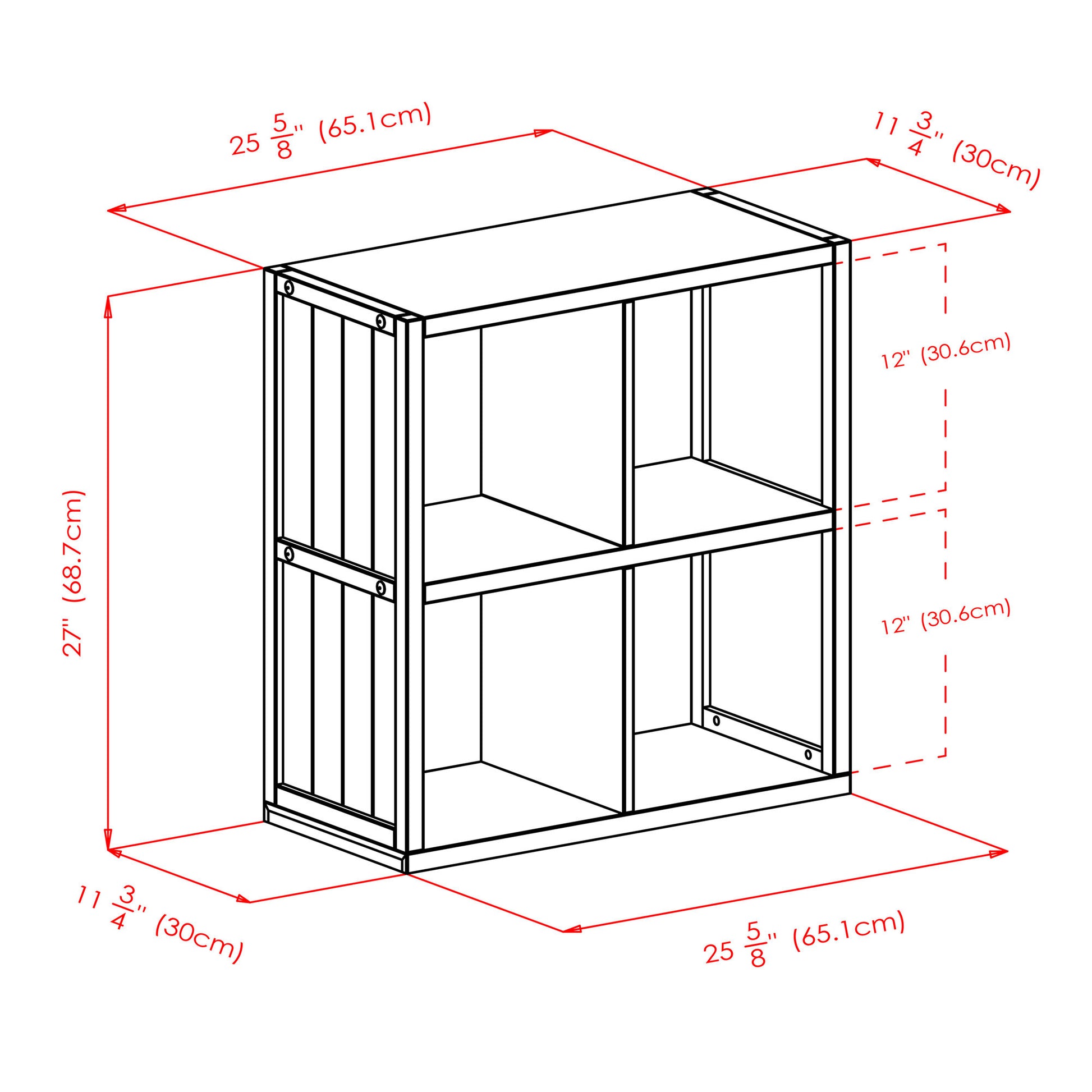 - Overall 2x2 shelf size is 25.6"W x 11.8"D x 27"H