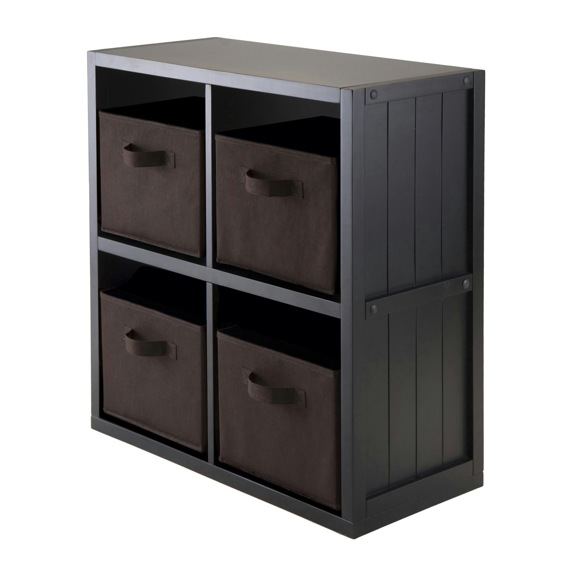 Timothy 5-Pc 2x2 Storage Shelf with 4 Foldable Fabric Baskets, Black & Chocolate