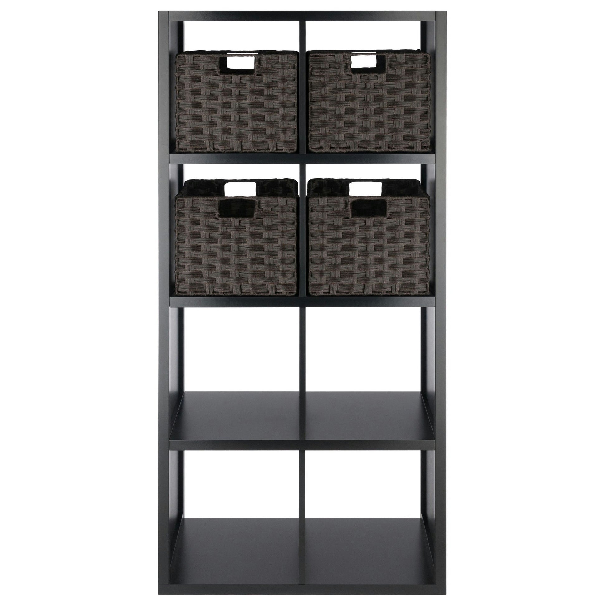 Timothy 5-Pc 4x2 Storage Shelf with 4 Foldable Woven Baskets, Black & Chocolate