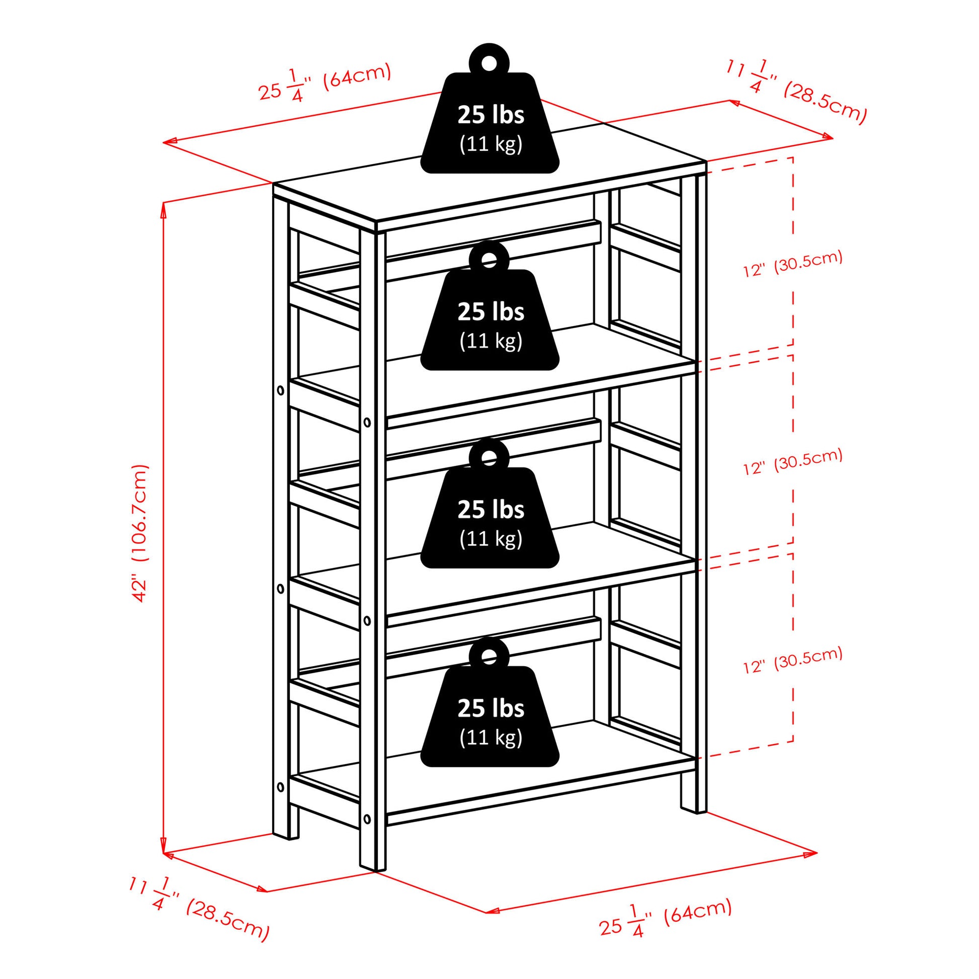 Whether you're stowing gloves and shoes in the entryway, organizing toys in the kids' rooms, or need a place for sweaters or towels, the Torino 4-Piece Shelf unit provides handsome and effortless storage. The 3-Tier open shelf is made of Solid Wood for long-lasting durability. The foldable baskets are constructed of sturdy fiberboard with Chocolate fabric. Carrying them is easy and secure with metal ring handles. This versatile shelf, finished in Espresso, offers stylish organization for all your essentials.