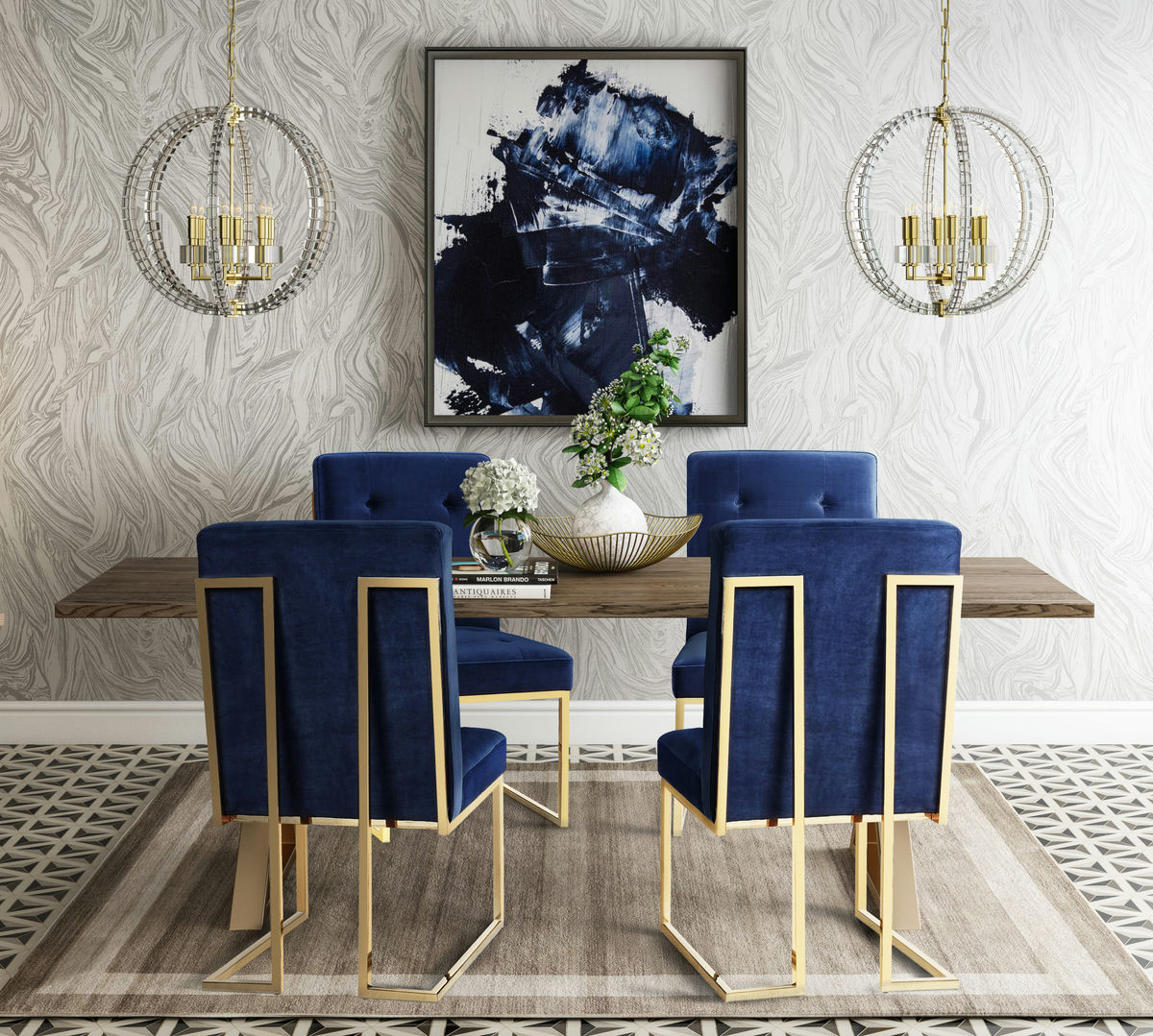 TOV Furniture Akiko Navy Velvet Chair - Set of 2