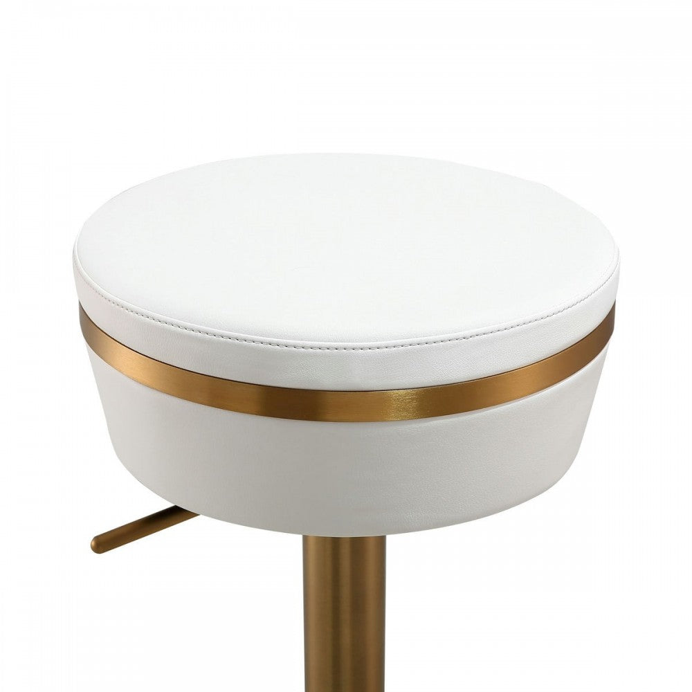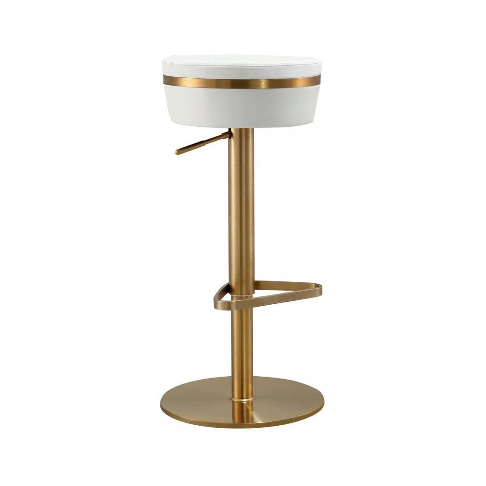 Bringing a minimalistic style with a glam twist to your kitchen space, meet the Astro Stool. The plush foam seating is upholstered in comfortable vegan leather, all accented by a gold band and sturdy stainless steel base. This stool is the perfect addition to a contemporary home while adding a subtle dazzle! Available in black, white, and malachite green.
