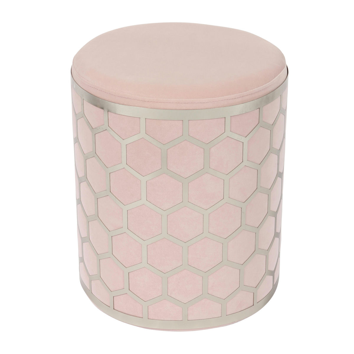 Sumptuous velvet and brushed stainless steel combine to create the distinct and unique Aubrey Ottoman. Its geometric design is complemented with soft upholstery and a plush fill for comfortable and stylish seating. Use one or bunch them together to create a luxe vibe in any room.