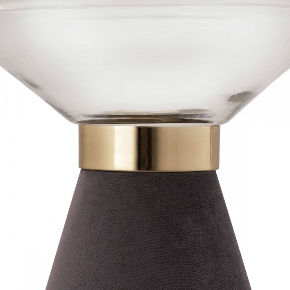 Enhance your space with the modern and stylish Aurora side table. Featuring a transparent cloud-hued glass top perched upon a velvet conical base and complemented with gold accents, this table will be an instant eye-catcher in any room.