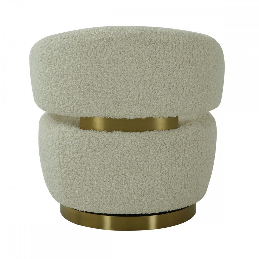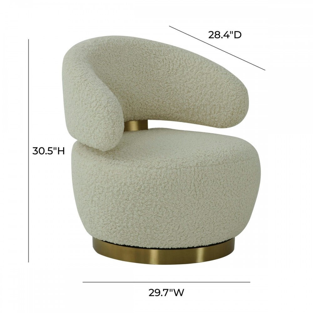 Plush, stylish, and bold, the Austin chair is an undeniably unique piece. Its soft and cozy faux shearling seat complemented with brushed gold finishes is timeless and inviting. This eye-catching chair will add a pop of style to any space.