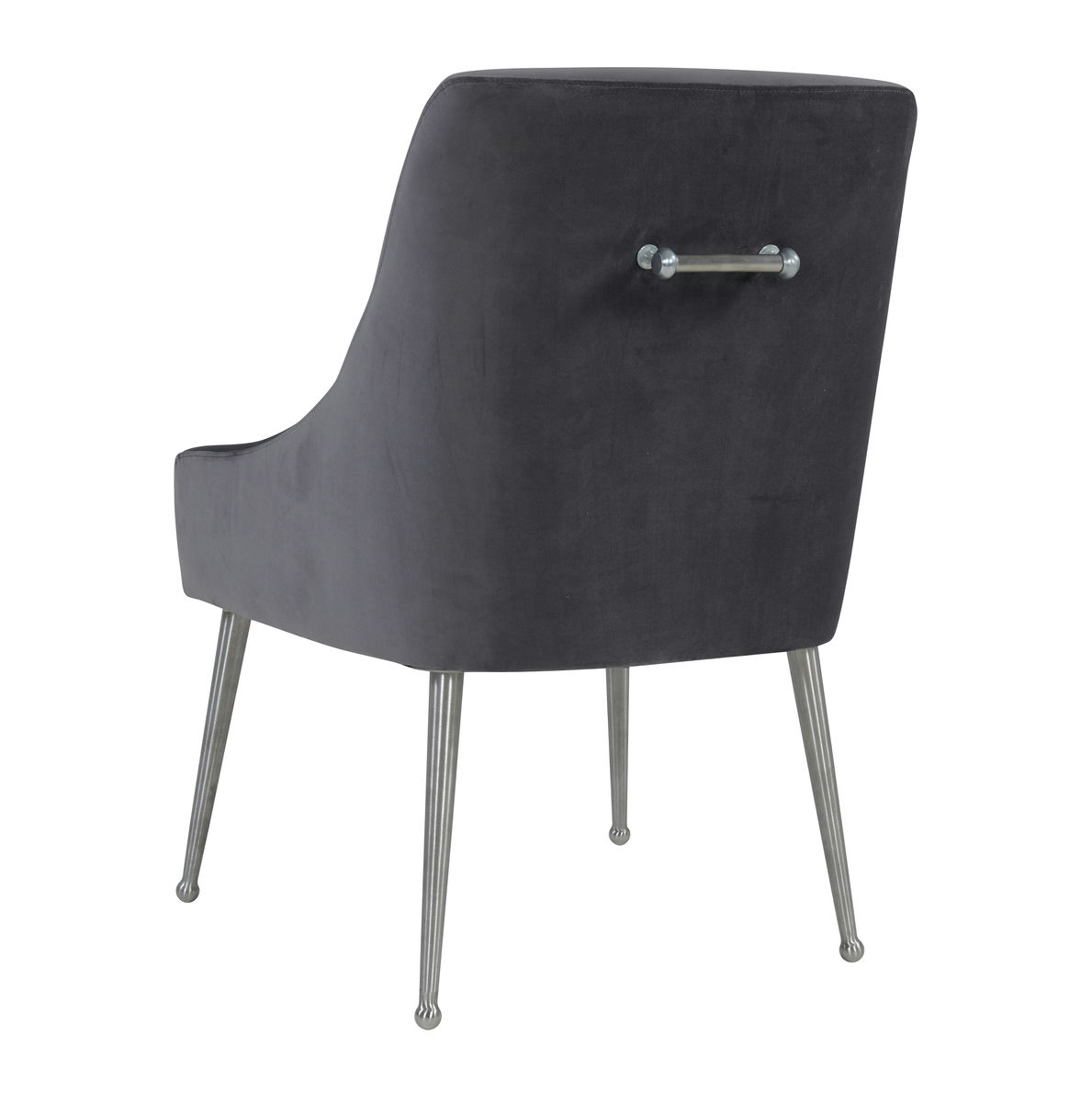 Sit pretty in this sumptuous yet durable velvet chair. The Beatrix dazzles as a dining chair or as an accent piece. Available in several colors with fab stainless steel legs and a matching handle on the back. Prop it into any room for a luxe, glamour effect.