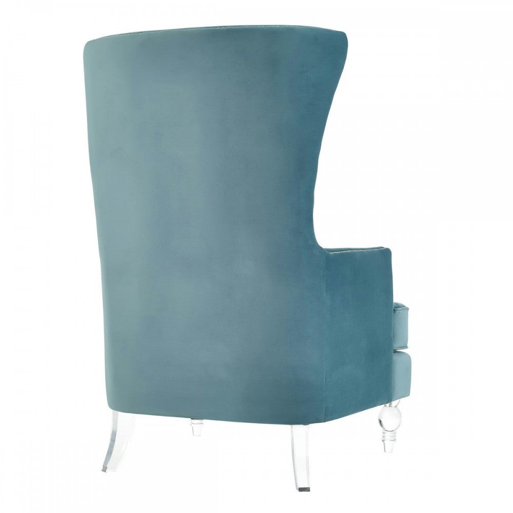 With its tall back and rich upholstery, the Bristol chair adds flair to any room with an authoritative presence. The hand-applied silver nail head trim and transparent lucite legs outline the impressive silhouette making it the ultimate accent chair.