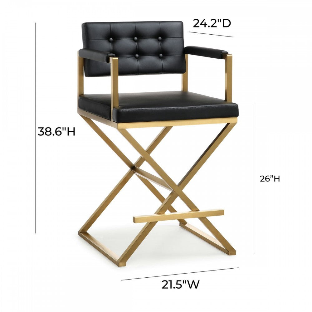 Furnish your kitchen or bar area in contemporary style with the Director stool. The gold solid stainless steel frame provides a sturdy base, while the plush extra deep seat and footrest ensure maximum comfort. The combination of angles and gentle curves gives this stool an eye-catching appearance, while the neutral color allows it to match well with any decor.