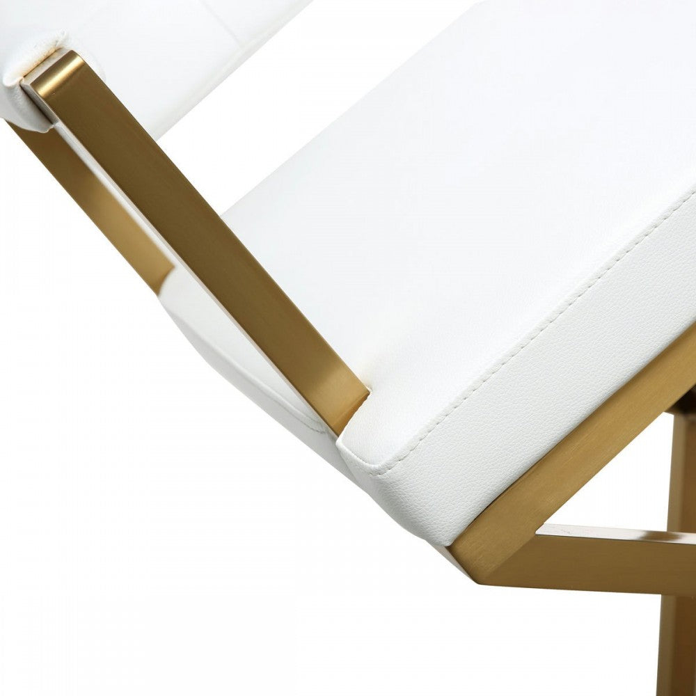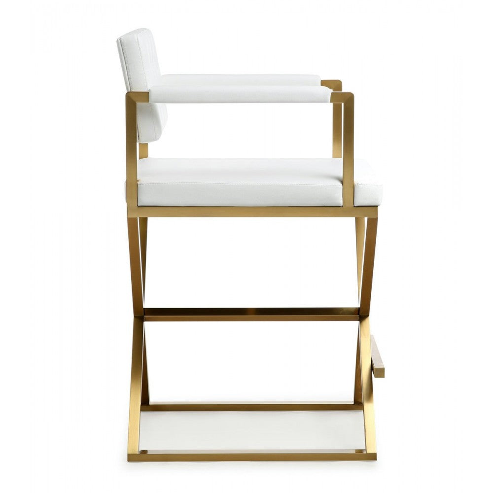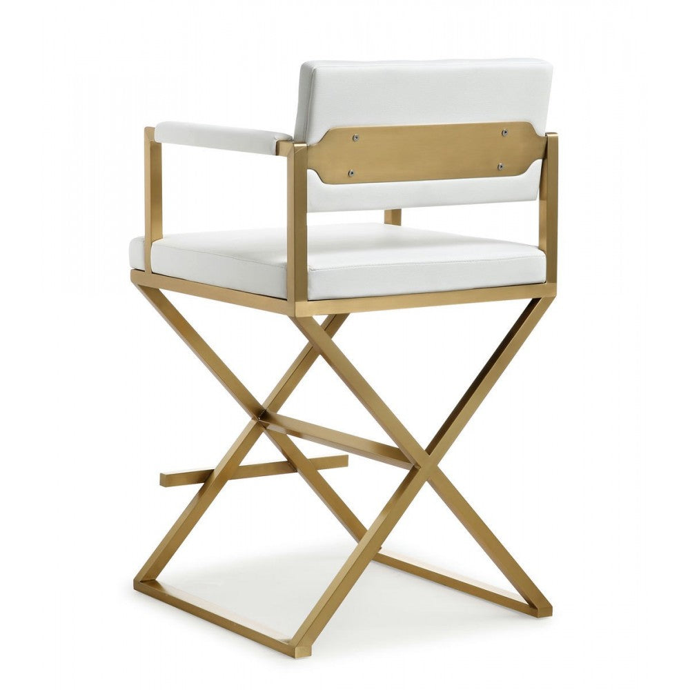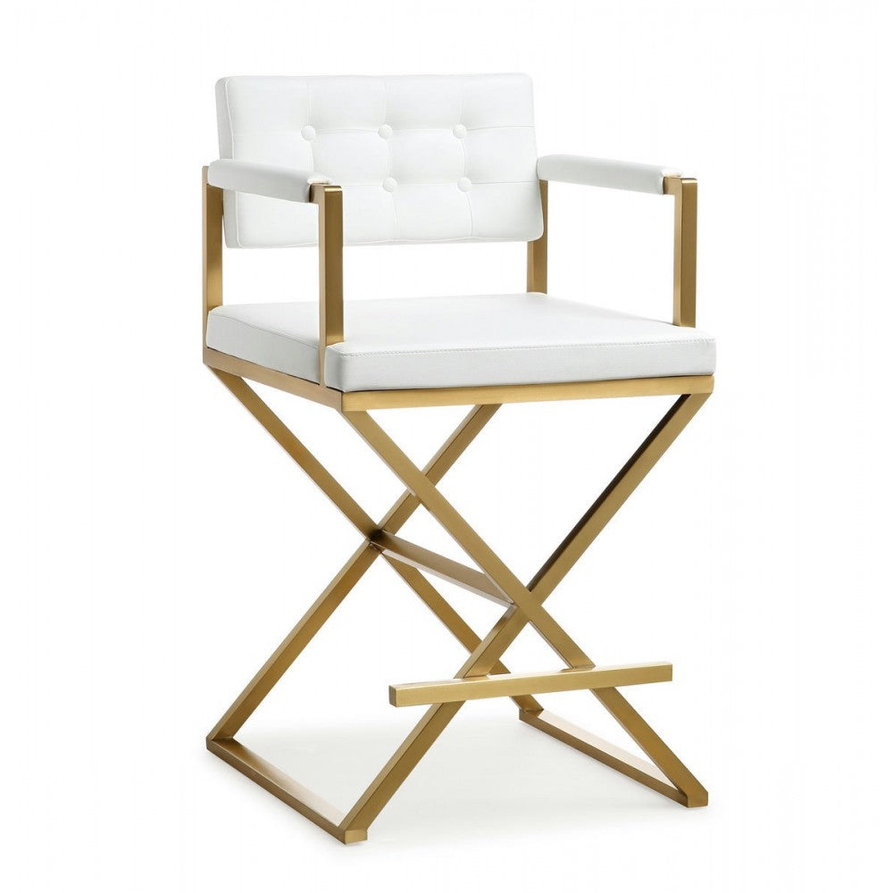 Furnish your kitchen or bar area in contemporary style with the Director stool. The gold solid stainless steel frame provides a sturdy base, while the plush extra deep seat and footrest ensure maximum comfort. The combination of angles and gentle curves gives this stool an eye-catching appearance, while the neutral color allows it to match well with any decor.