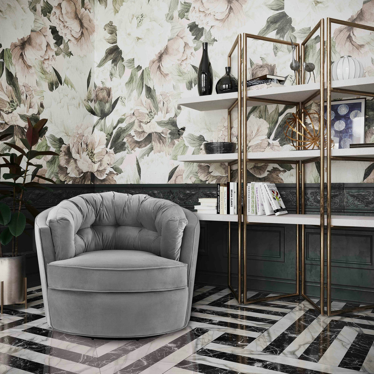 TOV Furniture Eloise Grey Velvet Swivel Chair