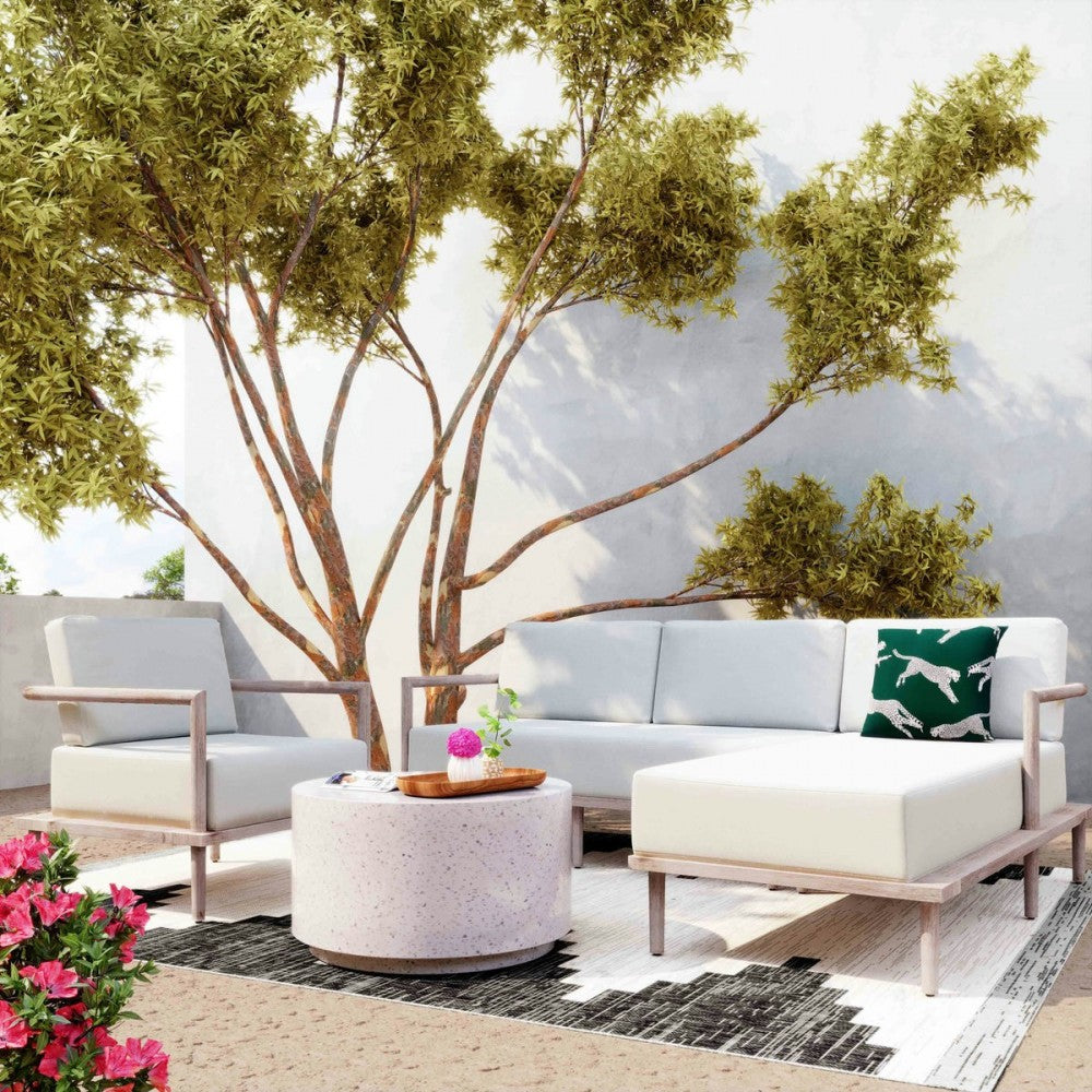 Outdoor living takes on a new meaning with the Emerson Outdoor collection. Sleek and linear, the Emerson Collection offers that modern lounge look in your outdoor space. The acacia frame beautifully complements the sophisticated cream upholstery and offers support, comfort and durability. Beware, you may never want to go back inside!