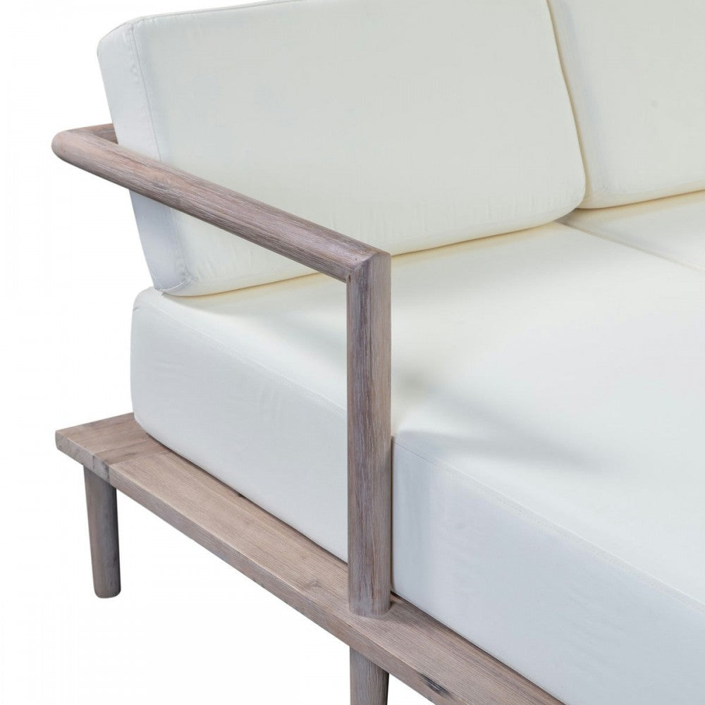 Outdoor living takes on a new meaning with the Emerson Outdoor collection. Sleek and linear, the Emerson Collection offers that modern lounge look in your outdoor space. The acacia frame beautifully complements the sophisticated cream upholstery and offers support, comfort and durability. Beware, you may never want to go back inside!
