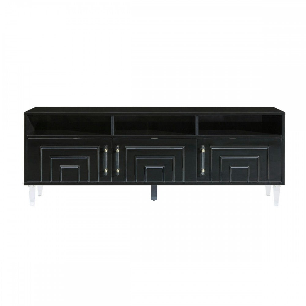 Make your home inviting with the Famke media console. Its glam design and angular molding combined with its lacquer finish and acrylic accents, will work wonders on your living room. Featuring cable management, soft-close doors and abundant storage space, it's available in multiple color options.