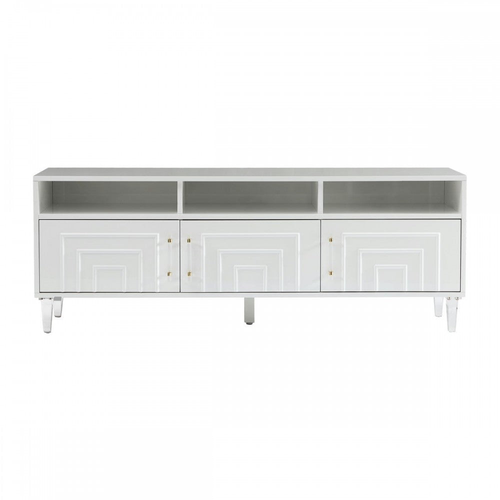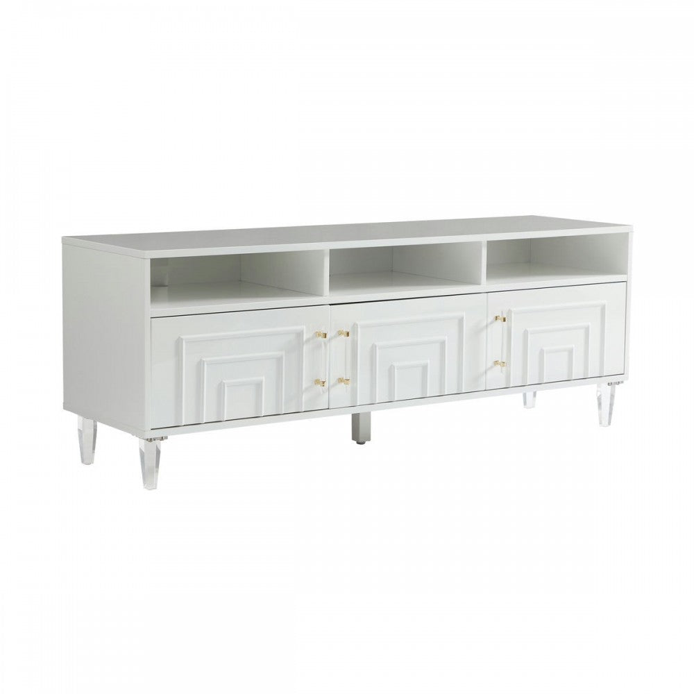 Make your home inviting with the Famke media console. Its glam design and angular molding combined with its lacquer finish and acrylic accents, will work wonders on your living room. Featuring cable management, soft-close doors and abundant storage space, it's available in multiple color options.