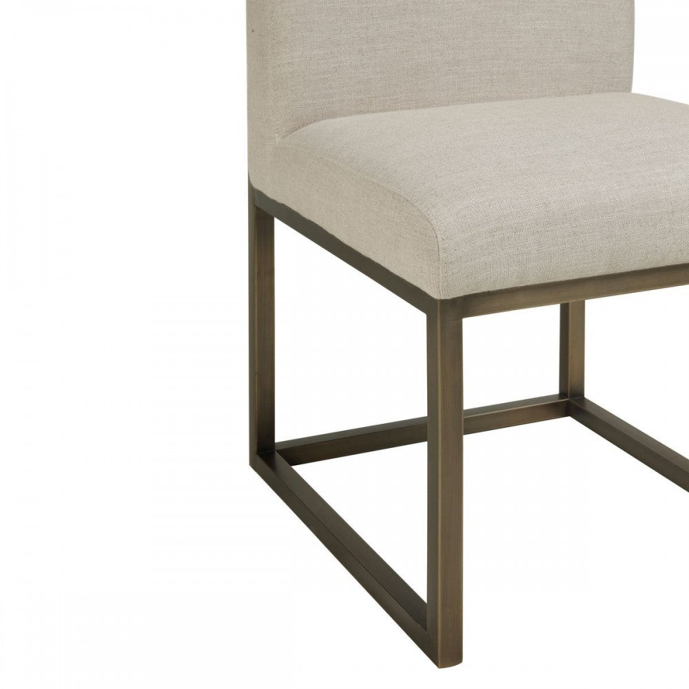 Demanding immediate attention, the fabulous design of our Haute chair is sure to add glam to any room. Sumptuous linen perched on a bronze colored stainless steel base provides a solid foundation for this effortlessly elegant chair.