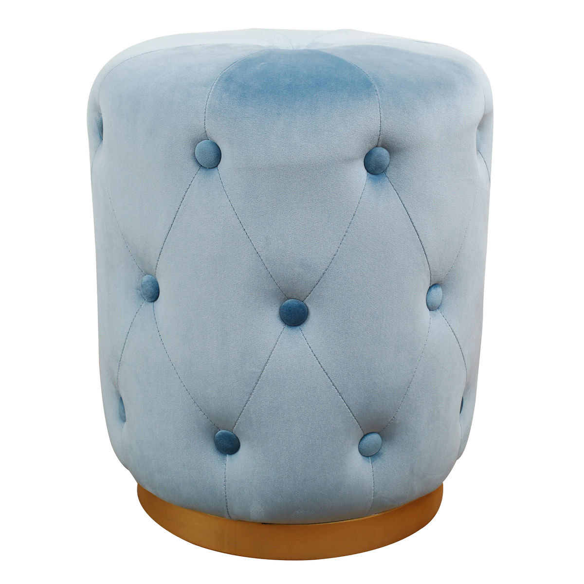 Muted hues and luxurious velvets define the Skylar ottoman. Adorned with button tufting and a recessed gold base it gives tribute to Hollywood glam style. Perfectly plush as a foot stool or extra seat, this ottoman is sure to please. Available in multiple color options.