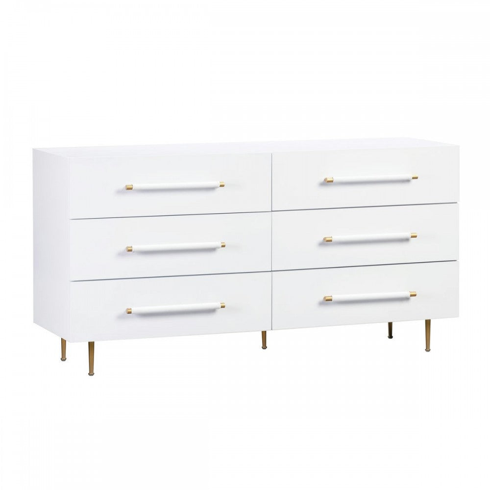 Simple yet brimming with understated elegance, the Trident dresser offers modern appeal and stylish functionality. Featuring plenty of storage space for your essentials, soft-close drawers and brass accents.