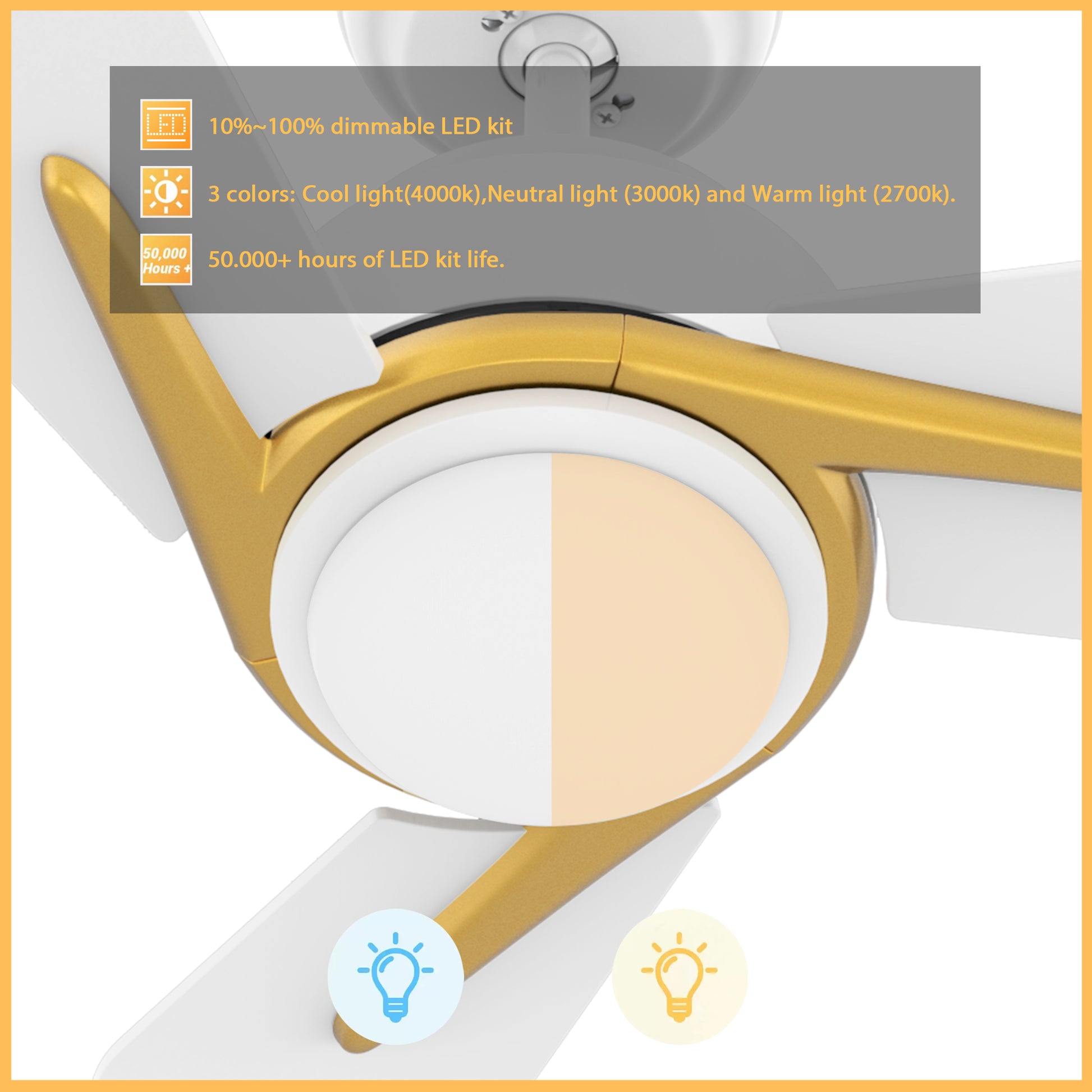 Tracer 52 Inch 3-Blade Smart Ceiling Fan - White (Gold Detail)