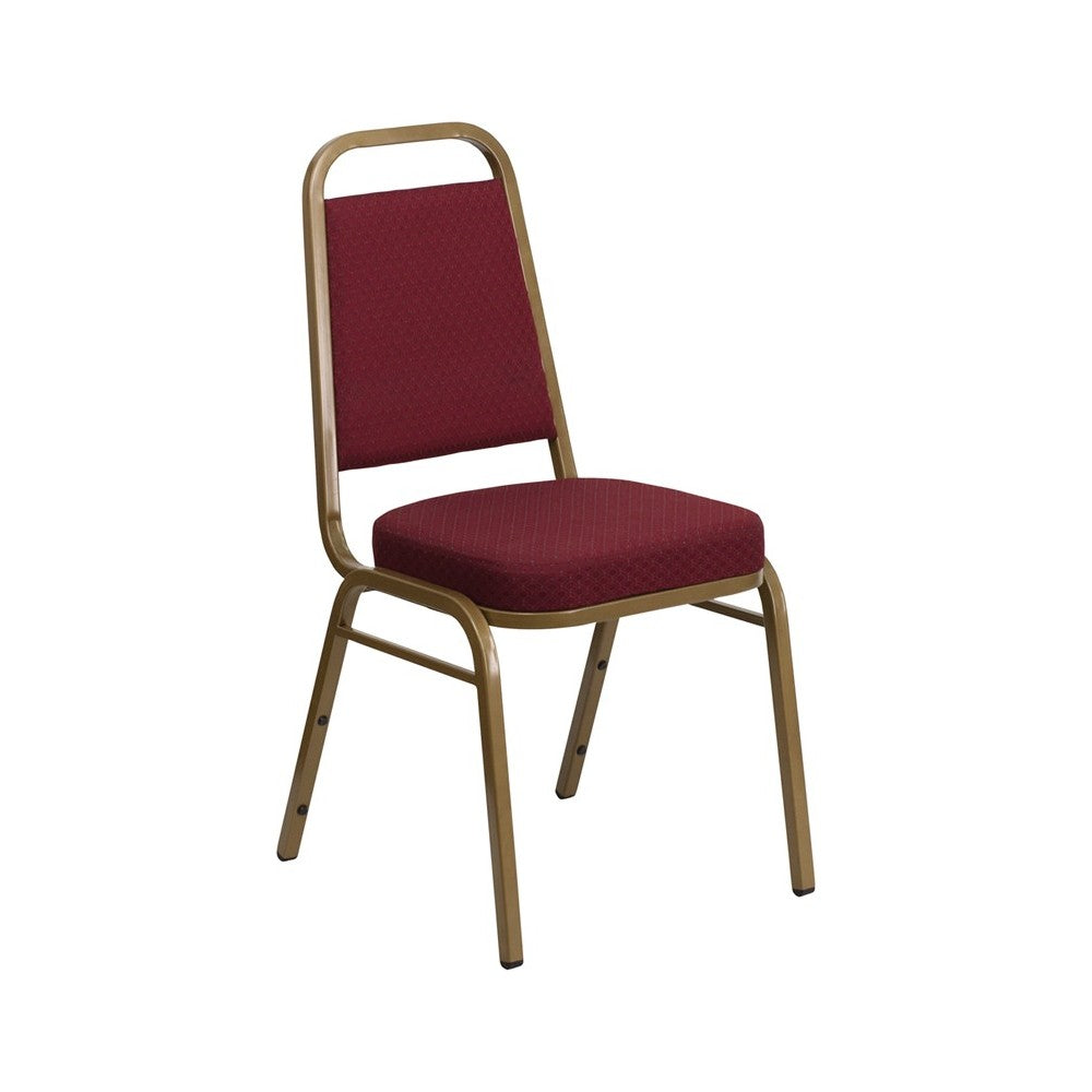 Trapezoidal Back Stacking Banquet Chair in Burgundy Patterned Fabric - Gold Frame
