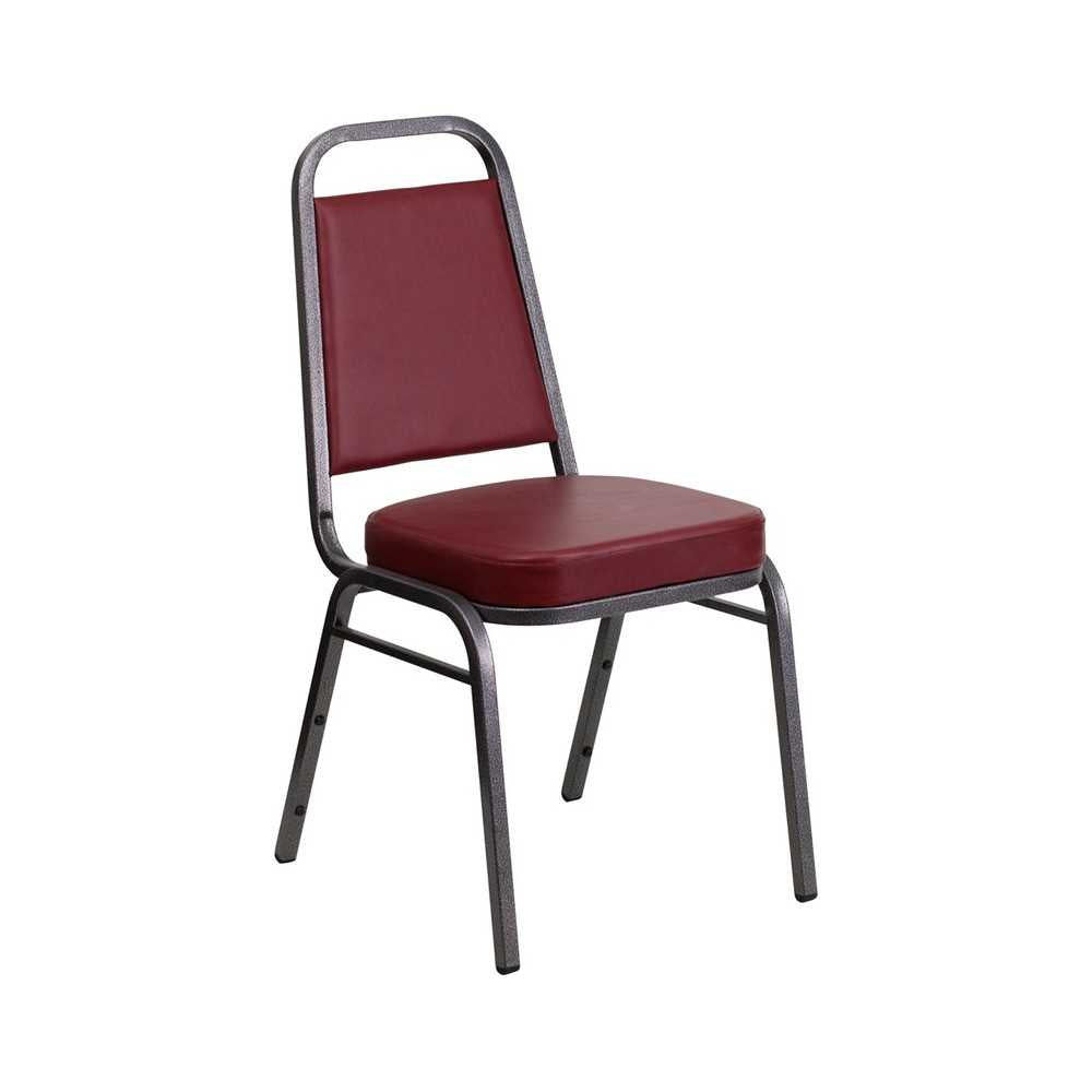 Trapezoidal Back Stacking Banquet Chair in Burgundy Vinyl - Silver Vein Frame