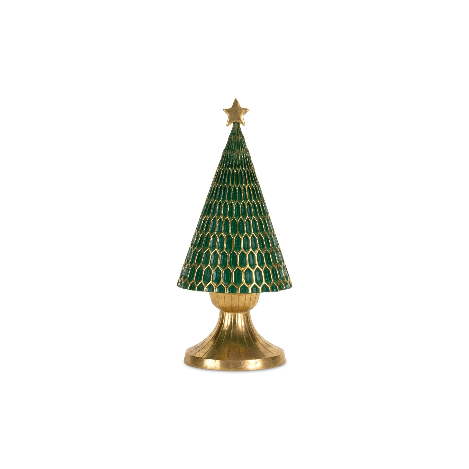 Enhance your holiday home decor with this beautiful set of Modern Holiday Tree Decor. Featuring three assorted sizes, ornate patterned design paired with the golden accent finish makes this piece the perfect addition to your Christmas decor. The quality polyresin composition is sure to last for seasons to come. Display the pieces in a table centerpiece or mantle arrangement to add interest.