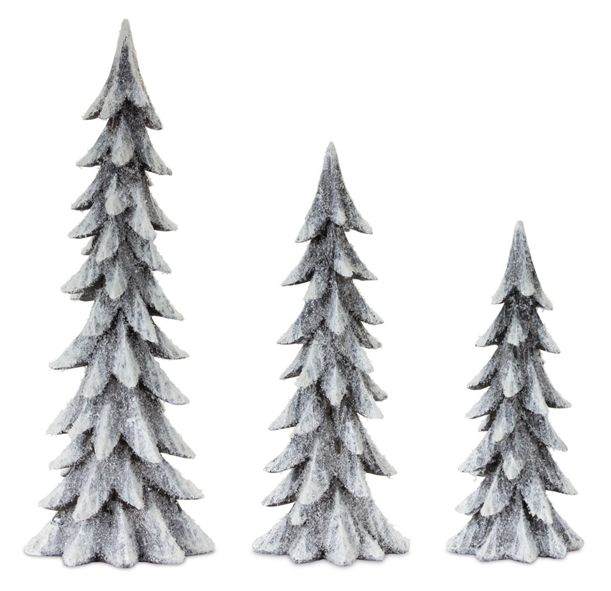 Enhance your holiday home decor with this stunning set of Holiday Tree decor. Featuring three assorted sizes, the traditional pine tree designs paired with the "snowy" finish makes this set a great addition to any style of Christmas decor. The quality polyresin and stone powder composition is sure to last for seasons to come. Display the pieces together to make a statement, or display along with other decor to spread the holiday cheer.