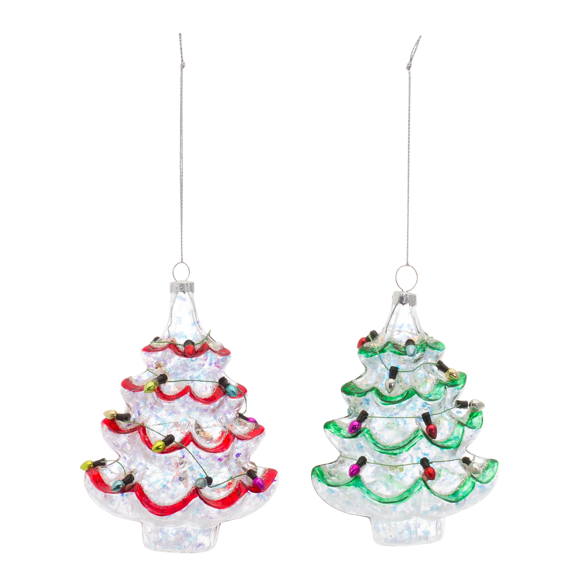Adorn your Christmas Tree with this beautiful set of Tree Ornaments. Featuring two assorted designs, the traditional pine tree design paired with the chic clear finish with holiday light accents makes this set the perfect addition to your holiday tree decor. The pieces can be used as gifts for friends to cherish, or you can display the set on your own Christmas tree and enjoy them for years to come.