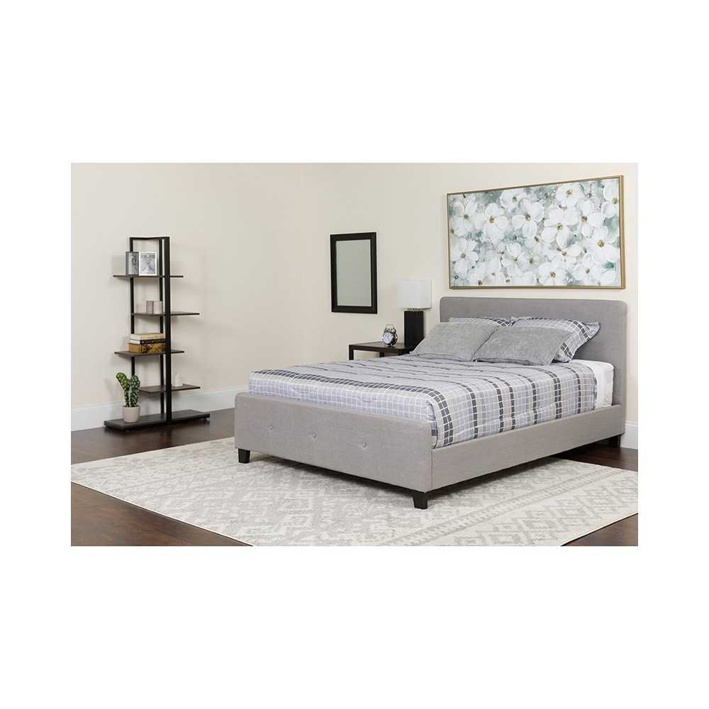 - Light Gray Fabric Tufted Upholstered Bed