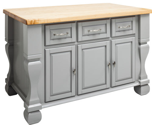 This 52-5/8" x 32-3/8" x 35-1/4" furniture style island is manufactured using the highest quality furniture grade hardwoods and MDF.The islands features three working drawers and cabinets on one side and fully adjustable display shelves on the reverse.