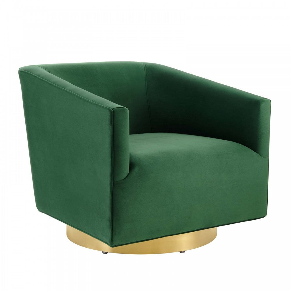 Twist Accent Lounge Performance Velvet Swivel Chair, Gold Emerald